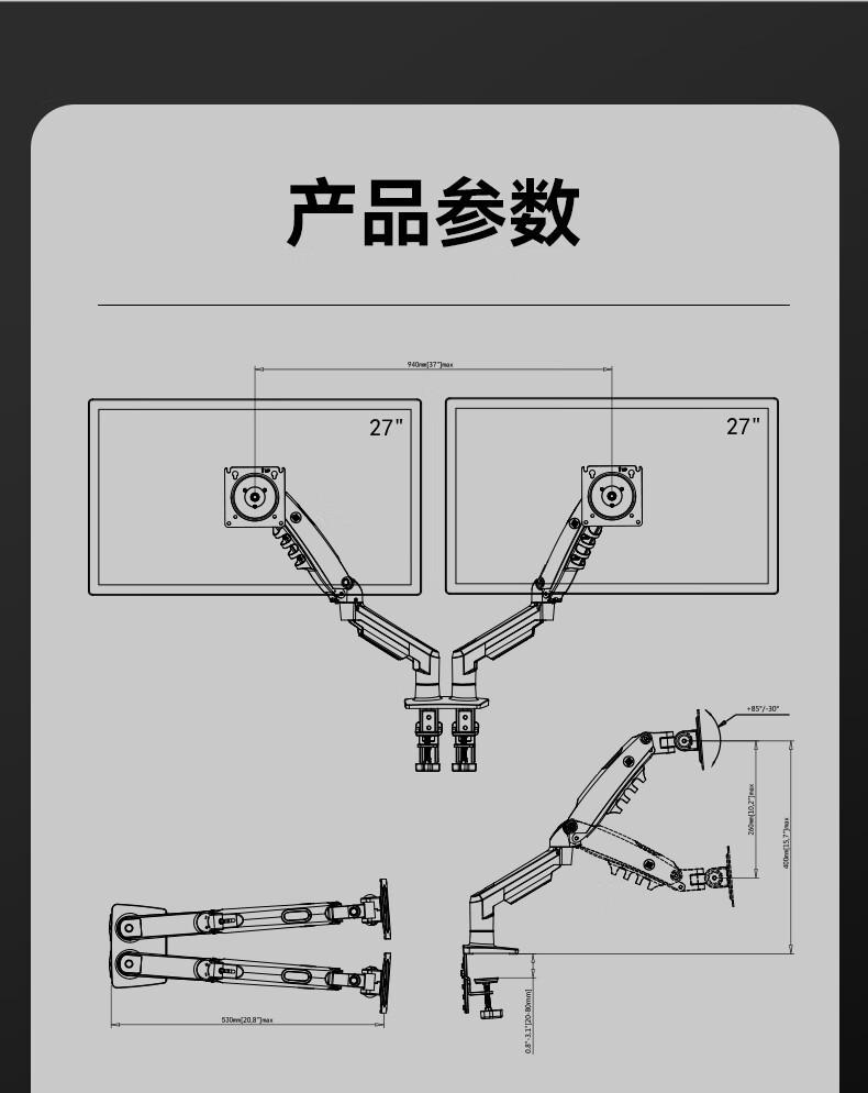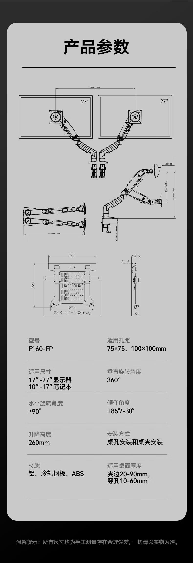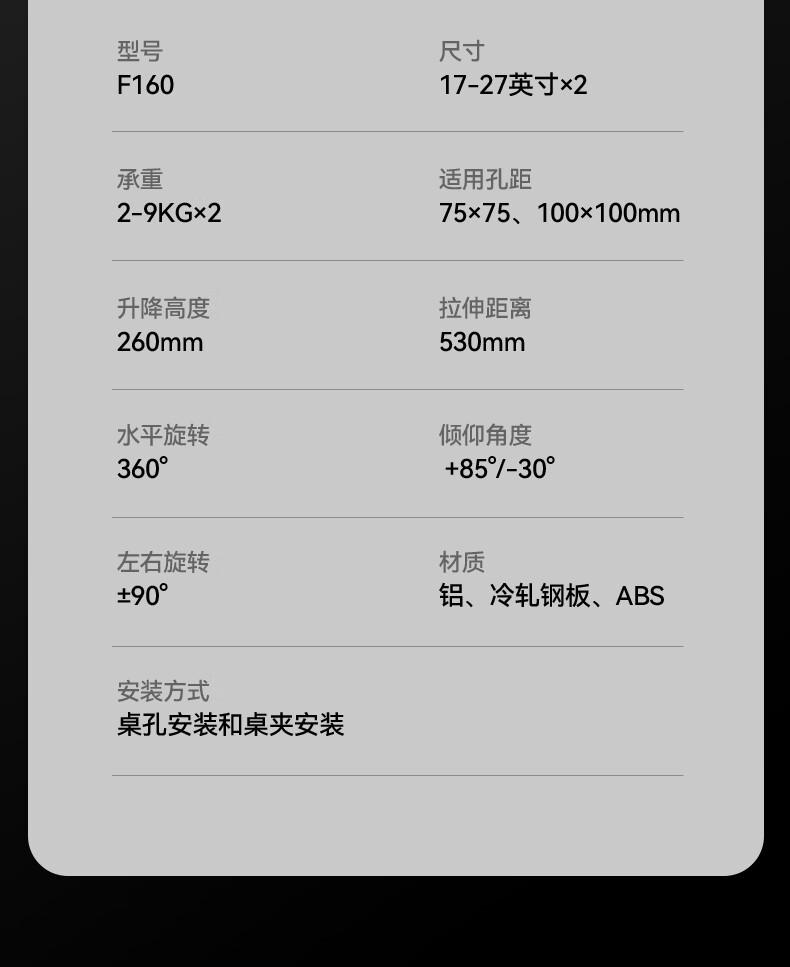 Soporte para Monitor de Computadora de Pantalla Dual de 17-27 pulgadas Ajustable Montaje de Escritorio para TV F160-Fp Antideslizante y Estable