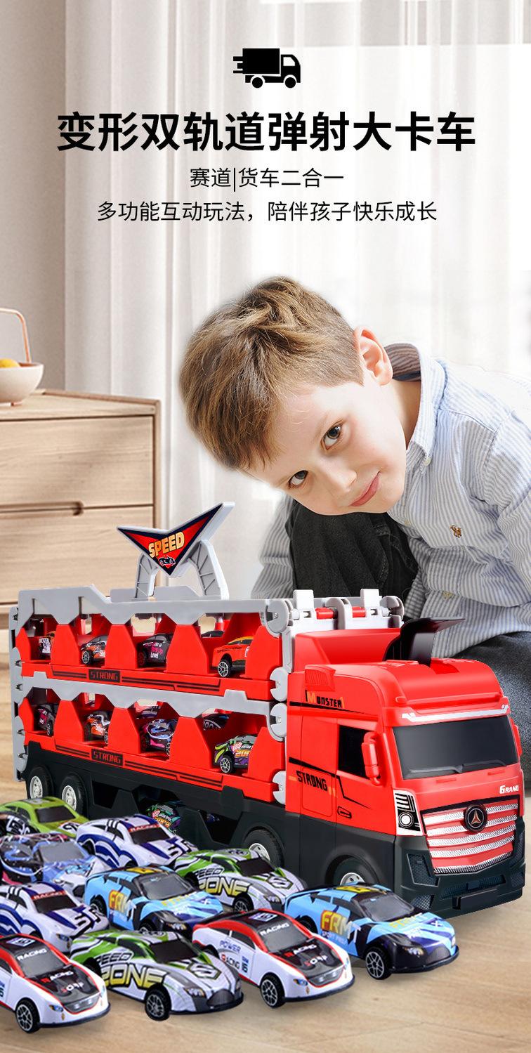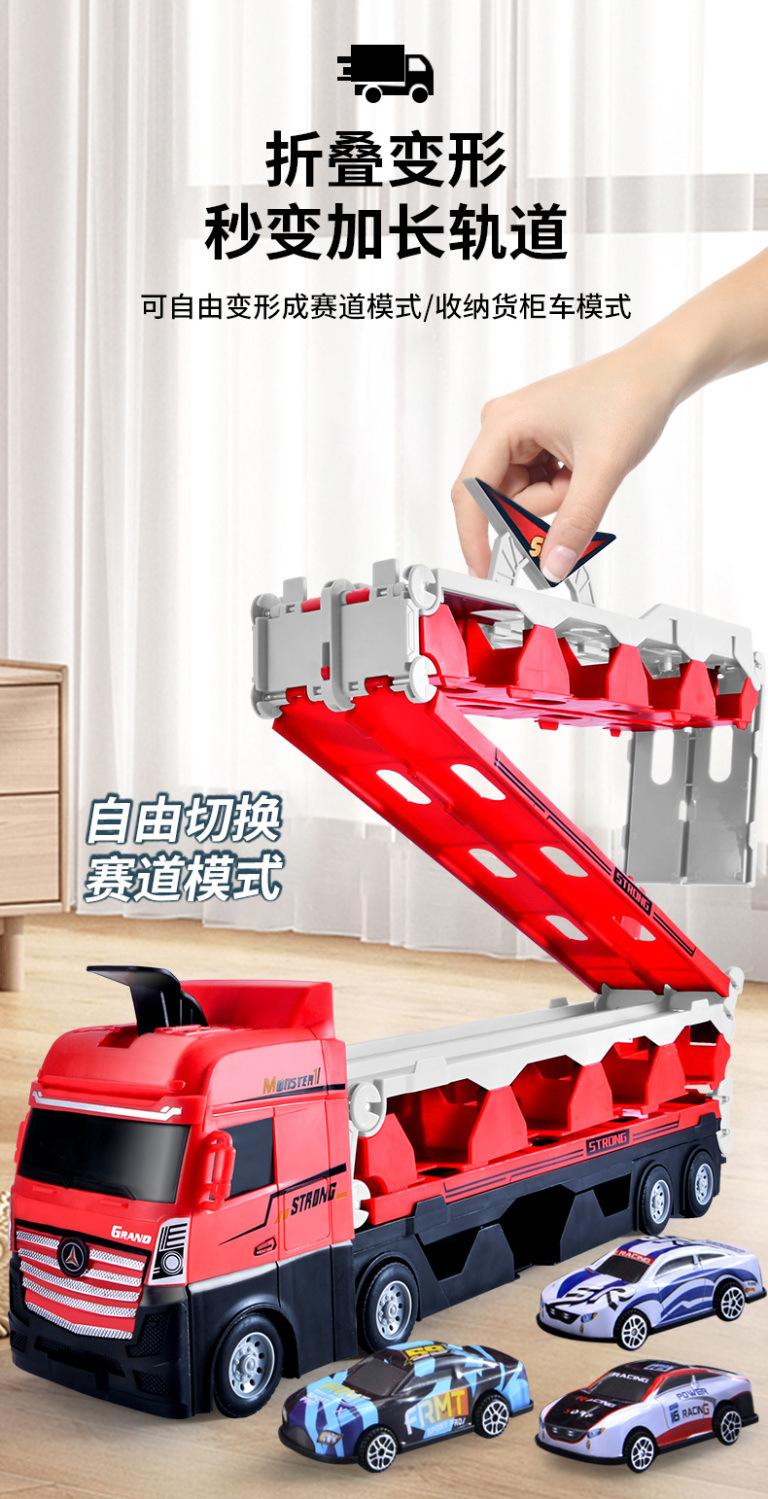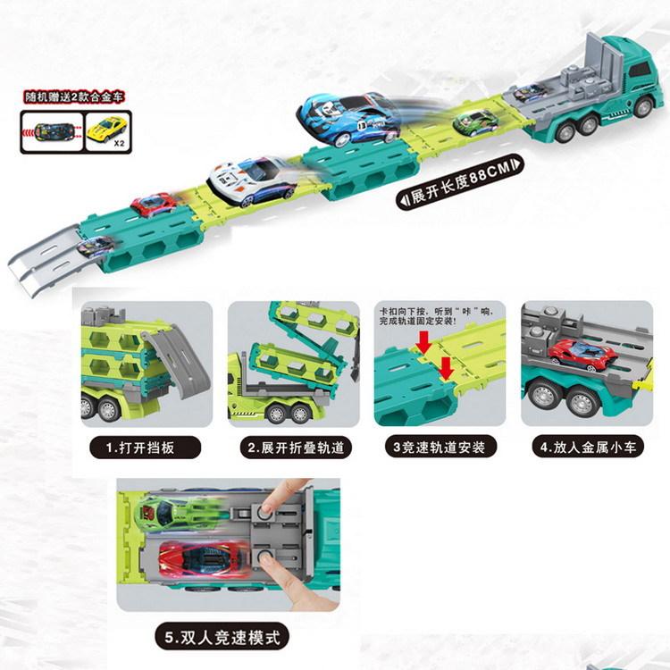 Camión catapulta de deformación para niños, almacenamiento plegable, pista, coche de carreras, camión competitivo de aleación, juguete de camión inercial
