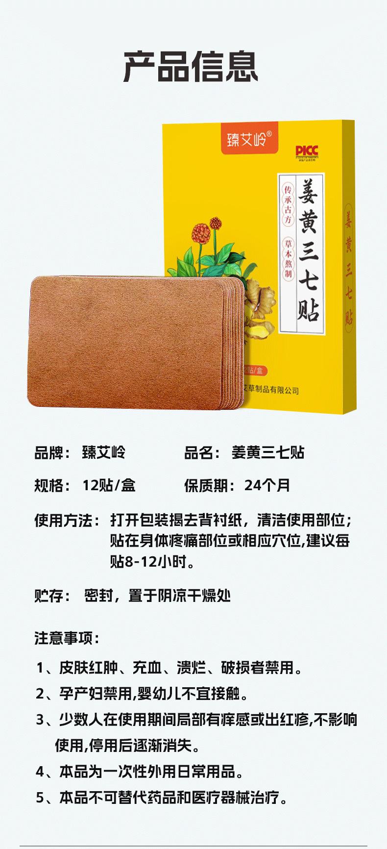 Parche Herbal de Calor de Cúrcuma y Panax Notoginseng para Penetración de 12 Horas, Adecuado para Alivio del Dolor Articular de Cuello, Hombro, Cintura y Pierna, Parche de Moxibustión