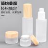 Frasco de crema emulsión de vidrio esmerilado con tapa de veta de madera, frasco para crema facial y de ojos, productos cosméticos para el cuidado de la piel, embotellado mediante presión, botella vacía con pulverizador.