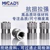 Las tuercas de cobre moleteadas se utilizan generalmente mediante técnicas de procesamiento como fusión en caliente, prensado en caliente, soldadura ultrasónica y moldeo por inyección, de modo que el producto y las piezas de plástico quedan estrechamente entrelazados para conectar, bloquear y apretar.