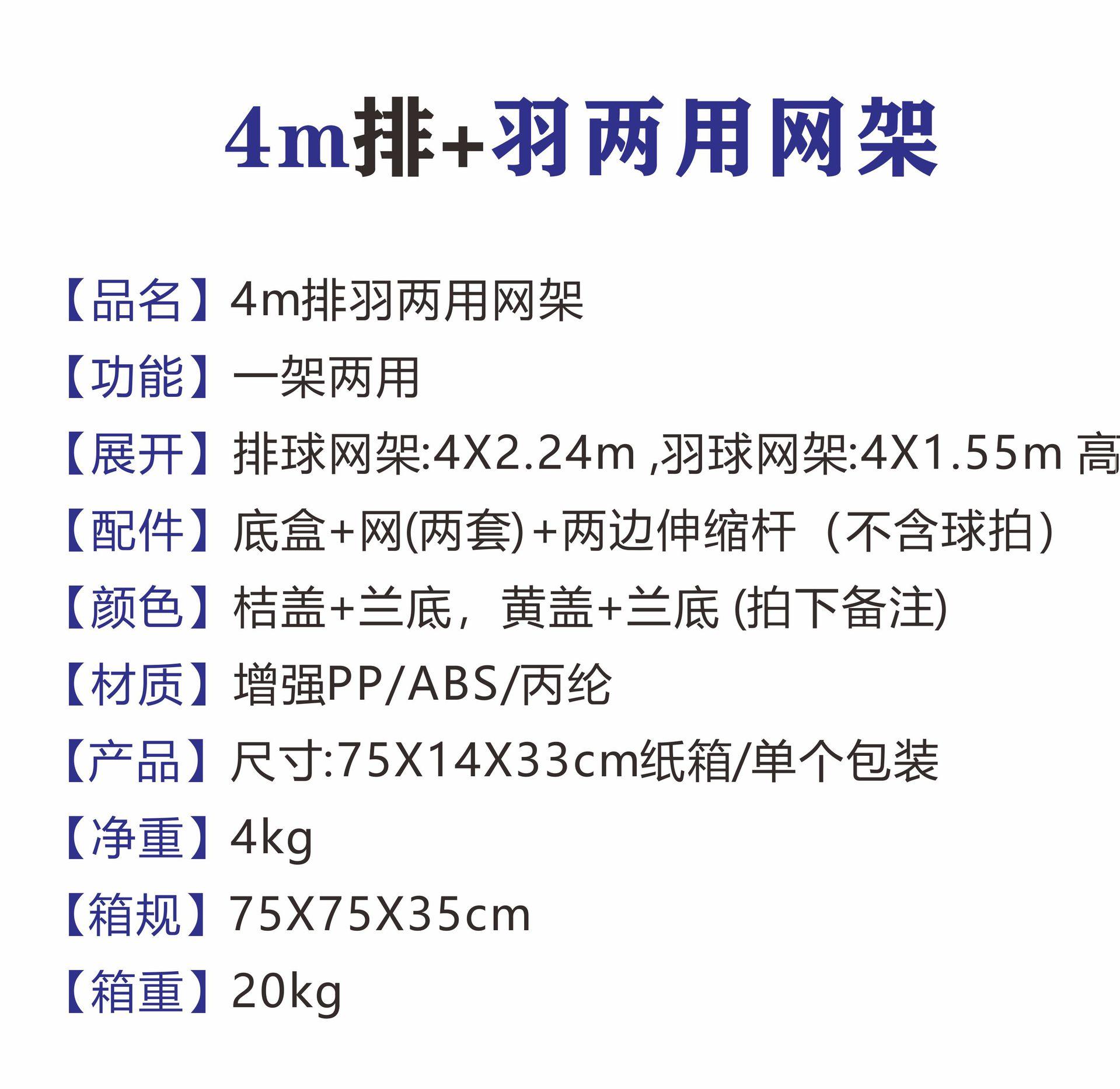 4m net 4m feather (104,155 high) dual-purpose net frame (orange)