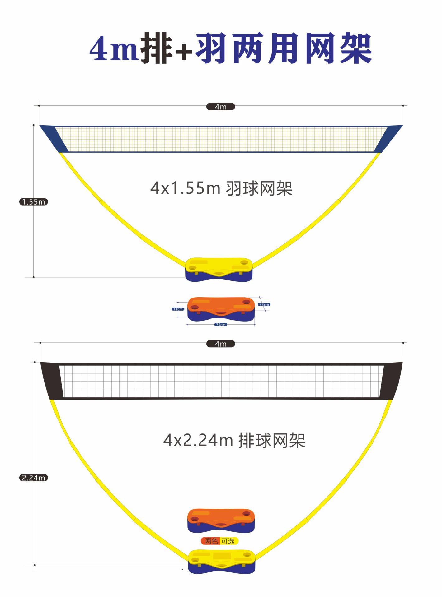 4m badminton net frame (high 155) yellow, 4m tennis net frame (high 107) yellow, 4m volleyball net (high 224) ...