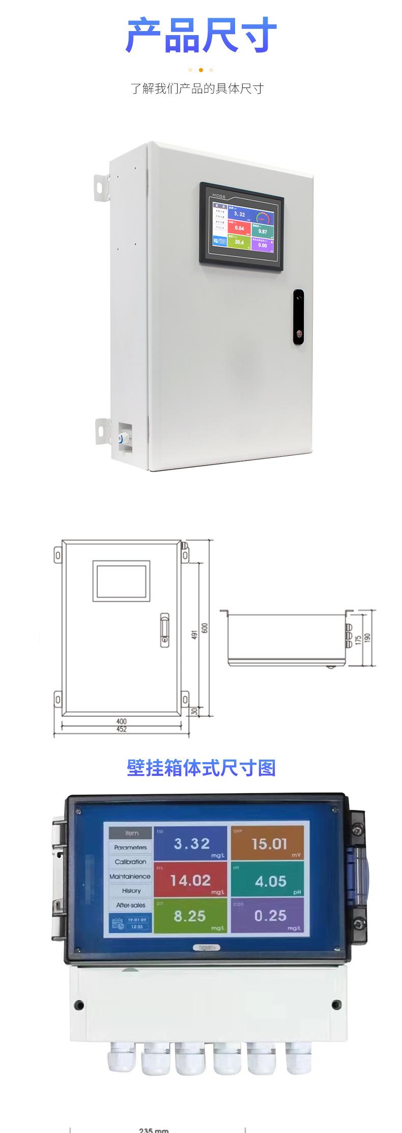 Detector en línea de calidad del agua de múltiples parámetros Instrumento de electrodo/Sensor de detección tipo caja de montaje en pared Monitoreo en línea