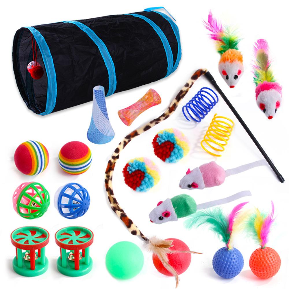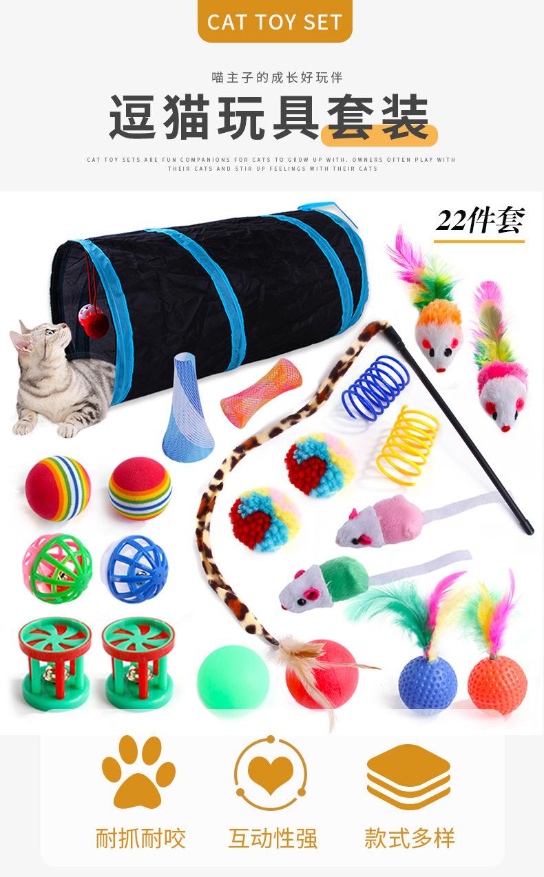 | Juguete para gatos transfronterizo, nuevo, con forma de campana, bola, pluma, palo de gato, peluche, ratón, resorte, túnel para gatos, juego de 22 piezas |