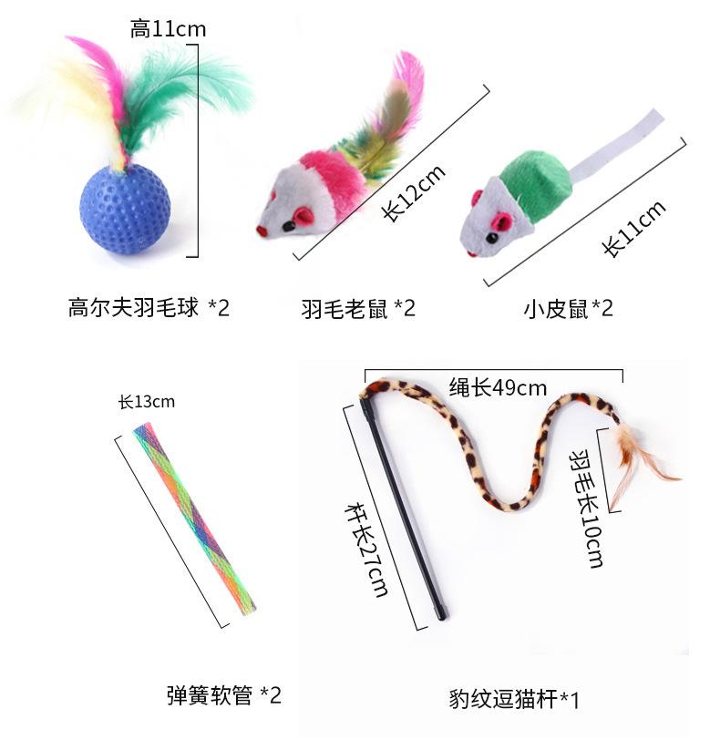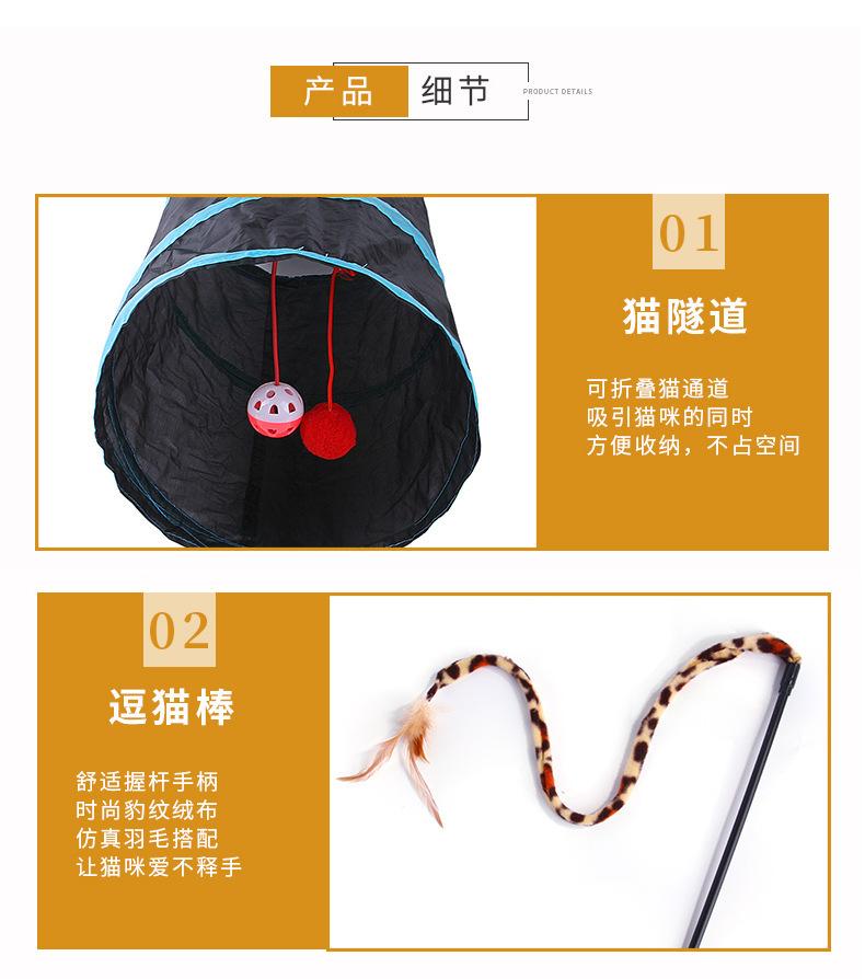 | Juego de juguetes para gatos transfronterizos con campana de papel, bola de resorte con pluma, caña de pescar, divertido palo para gatos, punto morado, punto naranja, túnel para gatos |