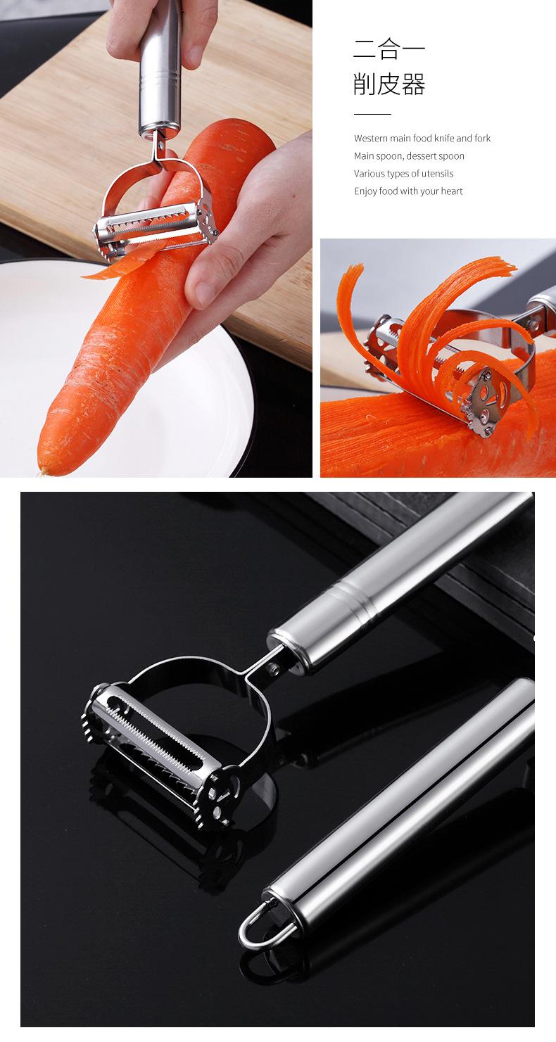 Pelador de cocina de acero inoxidable de doble cabezal, pelador de manzanas, pelador de patatas, raspador de verduras y frutas de cocina.