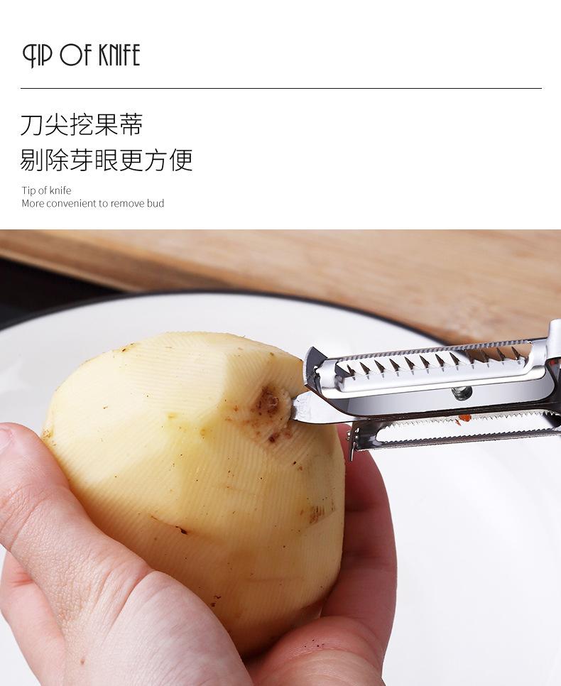 Compra Pelador de cocina de acero inoxidable de doble cabezal, pelador de manzanas, pelador de patatas, raspador de verduras y frutas de cocina. al por mayor en Joom.pro