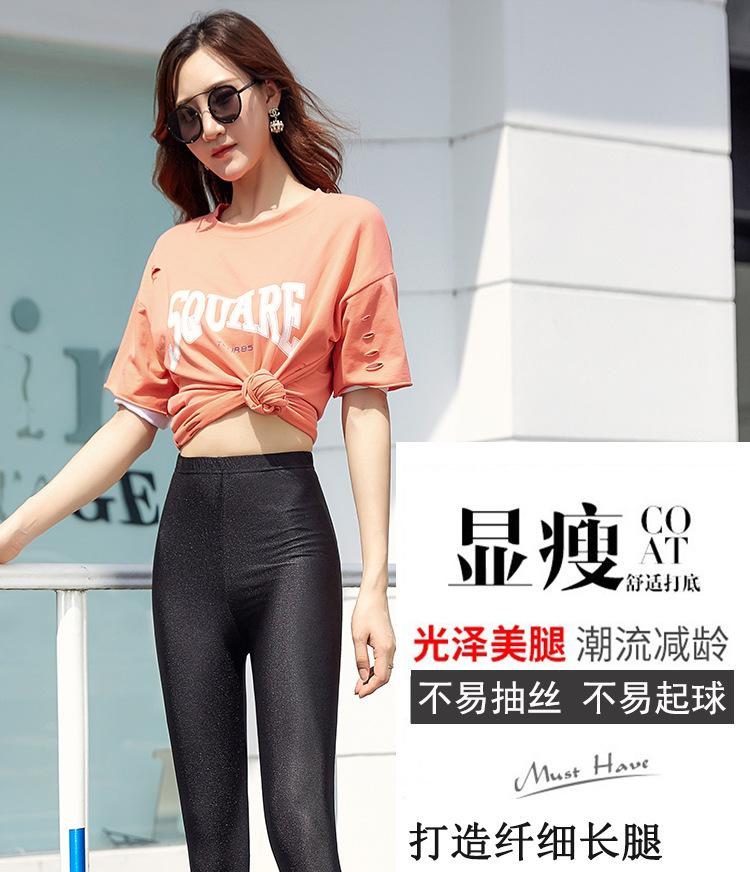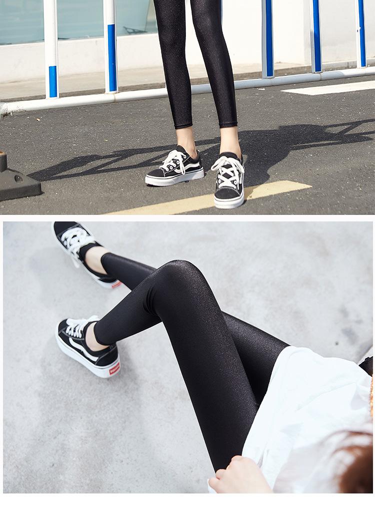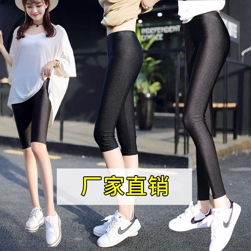Pantalones elásticos brillantes de otoño e invierno, nuevos, de nailon, ajustados, planos, hasta los tobillos, leggings recortados, pantalones de pedal, suministro directo de fábrica