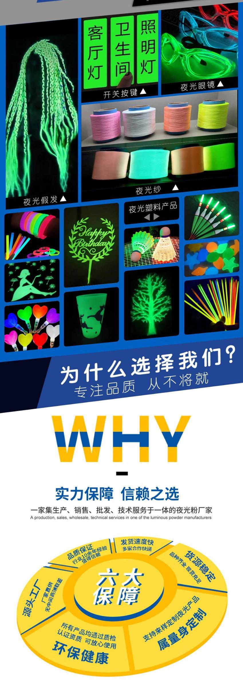 Yiwu Yufang New Materials Co., Ltd. es una empresa de alta tecnología ubicada en Yiwu, la capital de los pequeños productos básicos en China. Se ha dedicado a la investigación, desarrollo y fabricación de materiales luminiscentes y sus subproductos durante más de diez años. Yufang Company es una entidad que integra producción, investigación y desarrollo, y ventas. El material luminoso de larga duración desarrollado independientemente por la empresa puede continuar brillando en la oscuridad durante más de 10-12 horas después de absorber la luz solar durante 15-20 minutos. Sobre la base de la producción de materiales luminiscentes, la empresa también vende polvo que cambia de temperatura, polvo que cambia de color con la luz,tinte plástico, tintes de piedra, camaleones, pasta plateada láser y otros productos especiales de nuevos materiales con alto contenido técnico. Todos los productos producidos y vendidos por la empresa son no tóxicos, inofensivos, no tienen contaminación radiactiva y han pasado las pruebas EN71 ROHS SGS y otras. Con una excelente tecnología de producción y un servicio de ventas entusiasta, la empresa goza de la profunda confianza de los usuarios nacionales y extranjeros. Los productos de la empresa se exportan a Norteamérica, la Unión Europea, Corea del Sur, el Sudeste Asiático y otras regiones. La empresa se adhiere al principio de "basado en la integridad, la reputación primero". Amigos de todos los ámbitos son bienvenidos a llamarnos para consultas