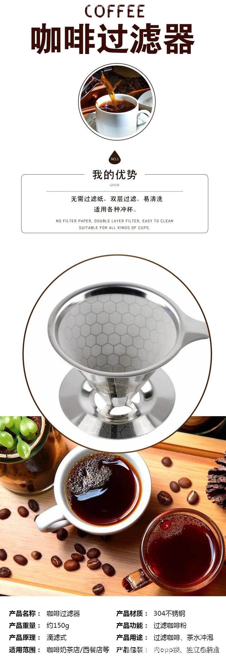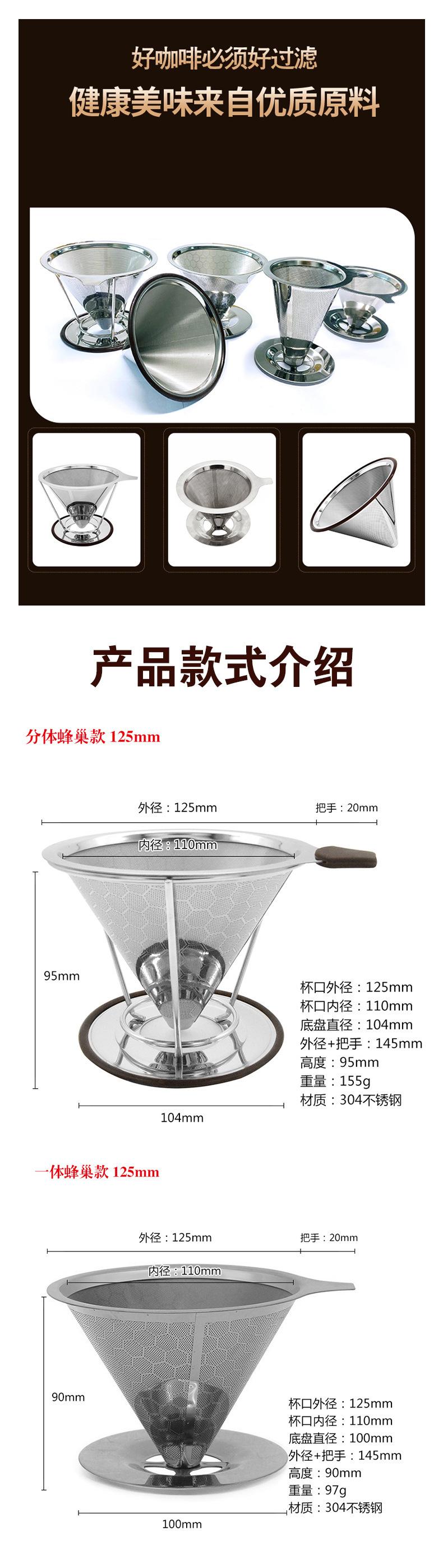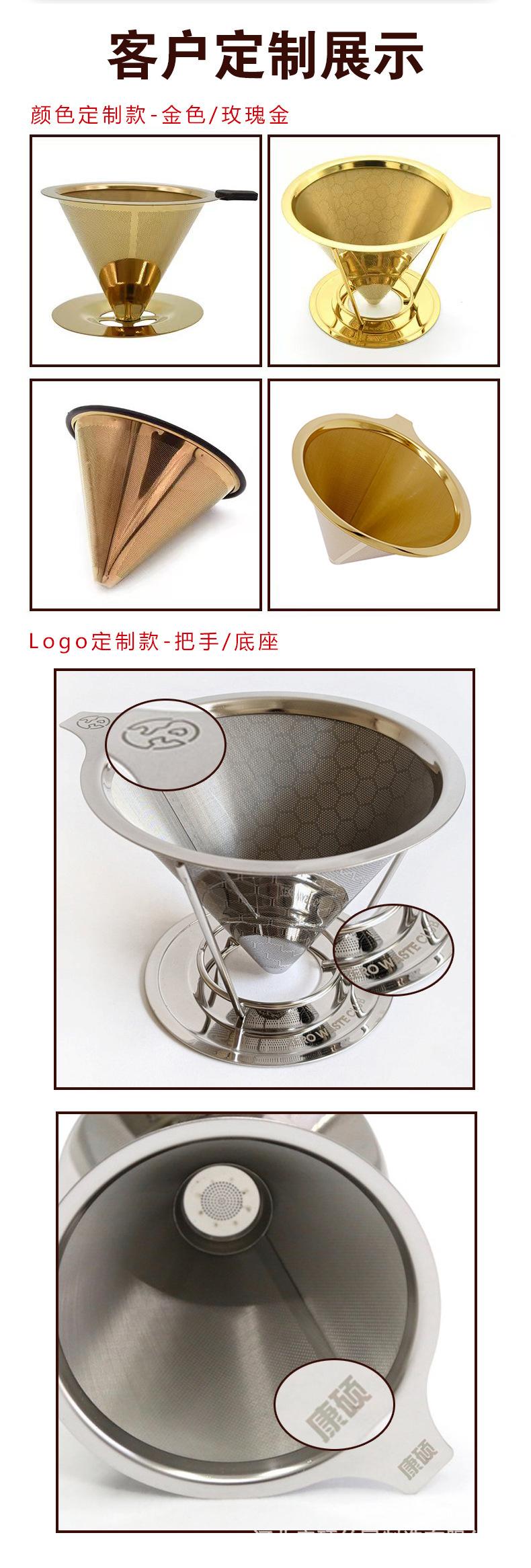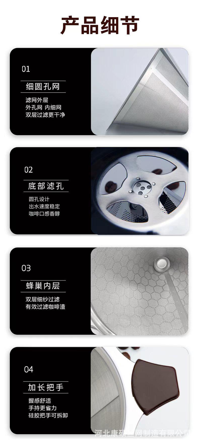 Filtro de café de acero inoxidable 304, embudo de filtro de café de doble capa, filtro de goteo de papel sin filtro estilo americano, taza