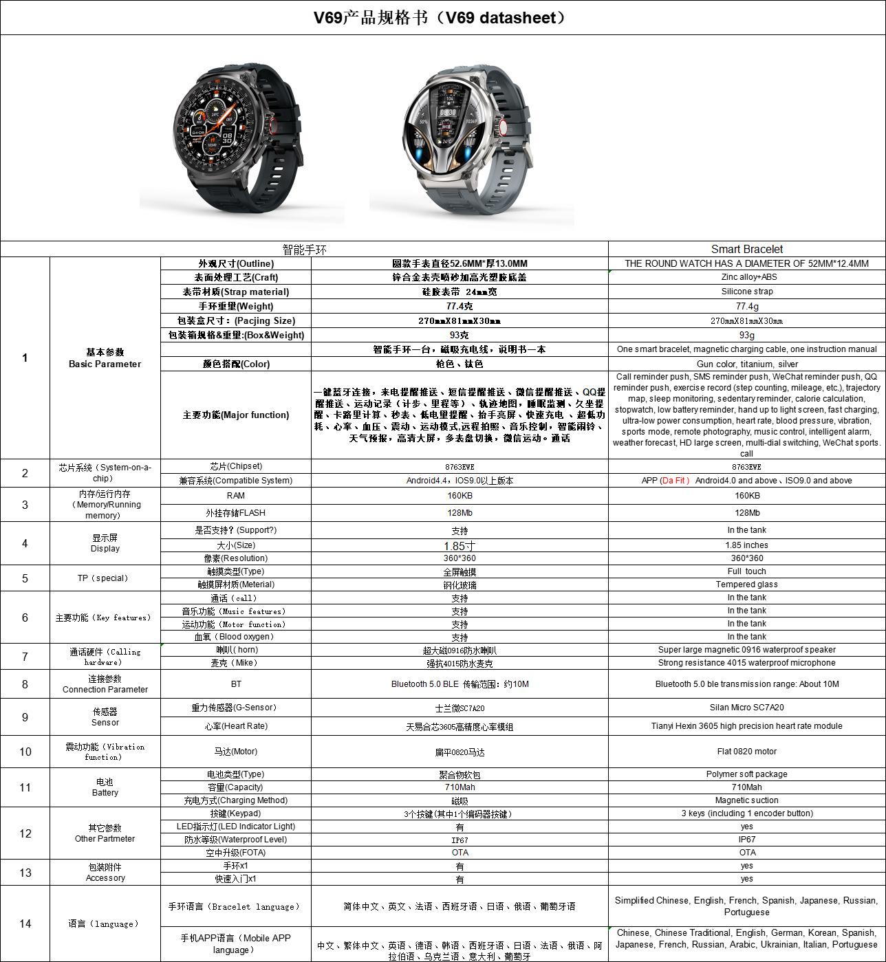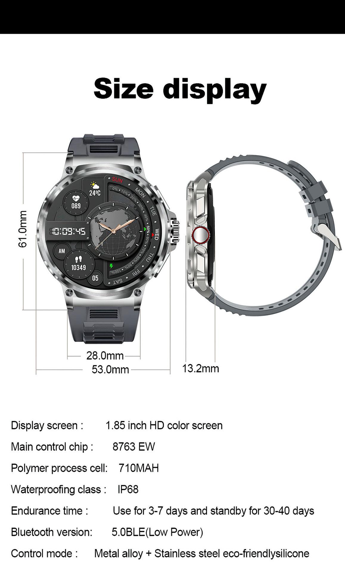 Nuevo reloj inteligente V69 con llamadas Bluetooth, pantalla grande de 1,85 pulgadas, pantalla redonda, control de la frecuencia cardíaca, oxígeno en sangre y multideporte.