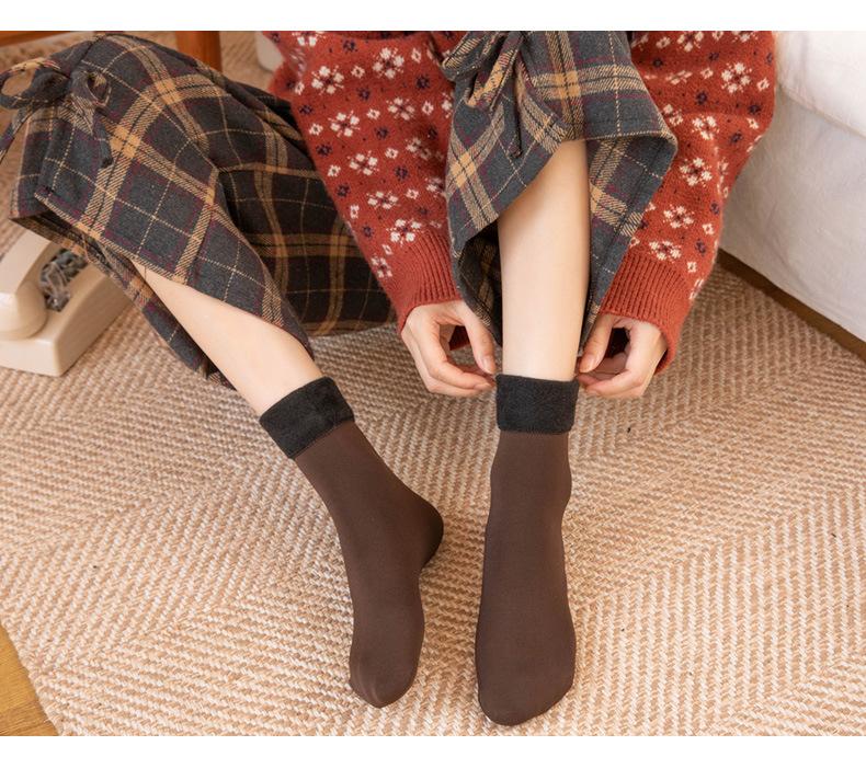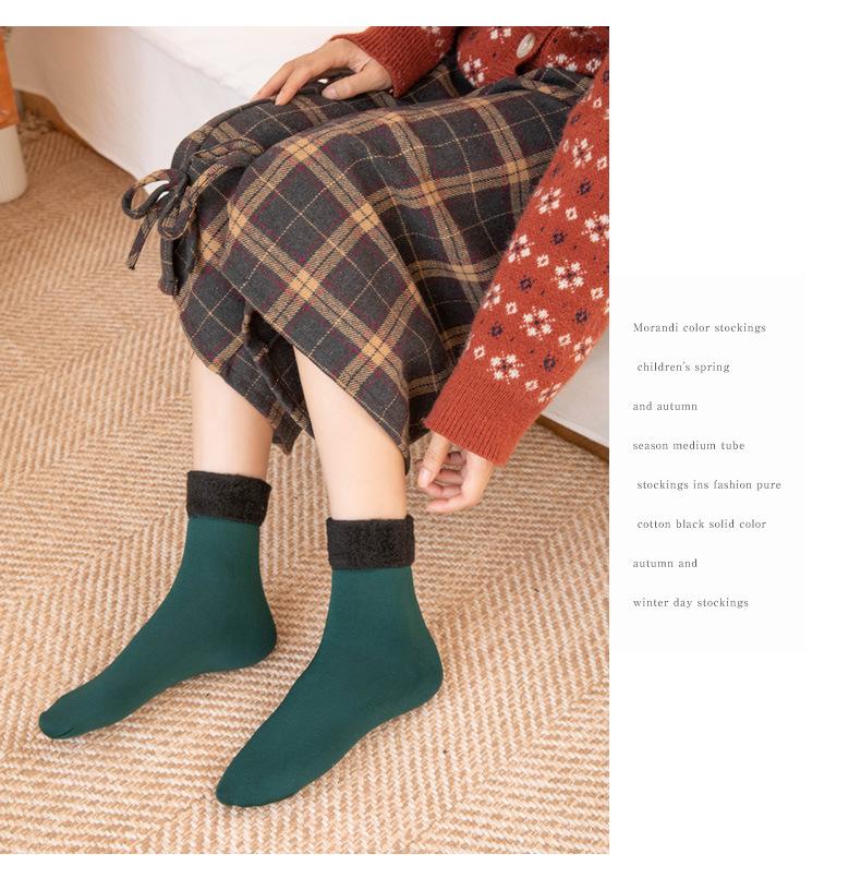 Calcetines cálidos hasta media pantorrilla para mujer, calcetines para dormir de confinamiento de color sólido para hombres y mujeres, calcetines de nieve gruesos con forro polar para otoño e invierno.
