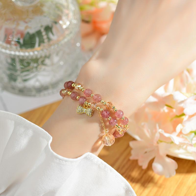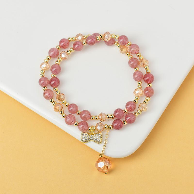 【Nombre del producto】: Pulsera de doble círculo de cristal de fresa