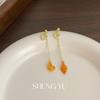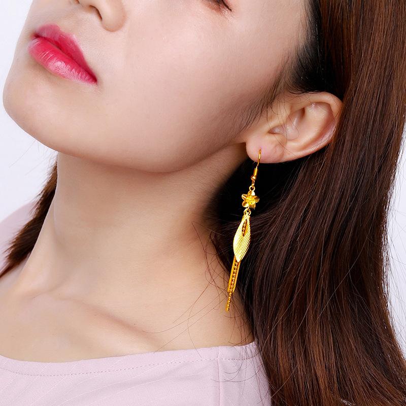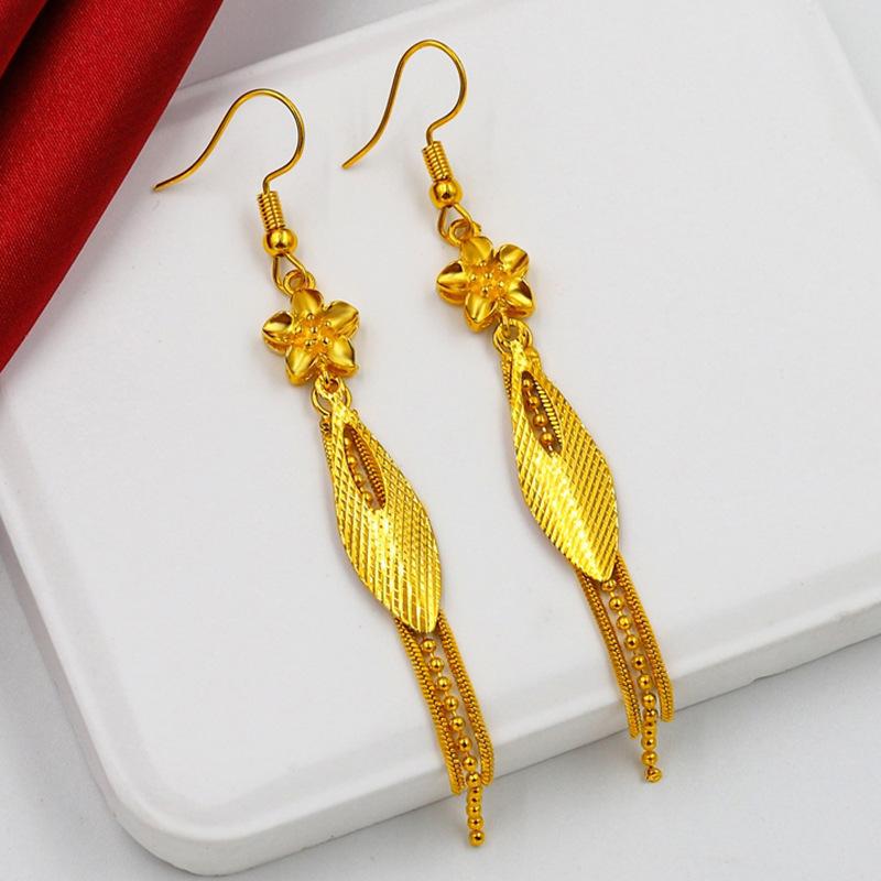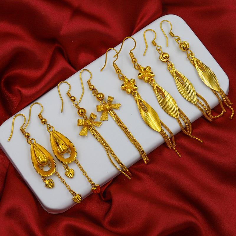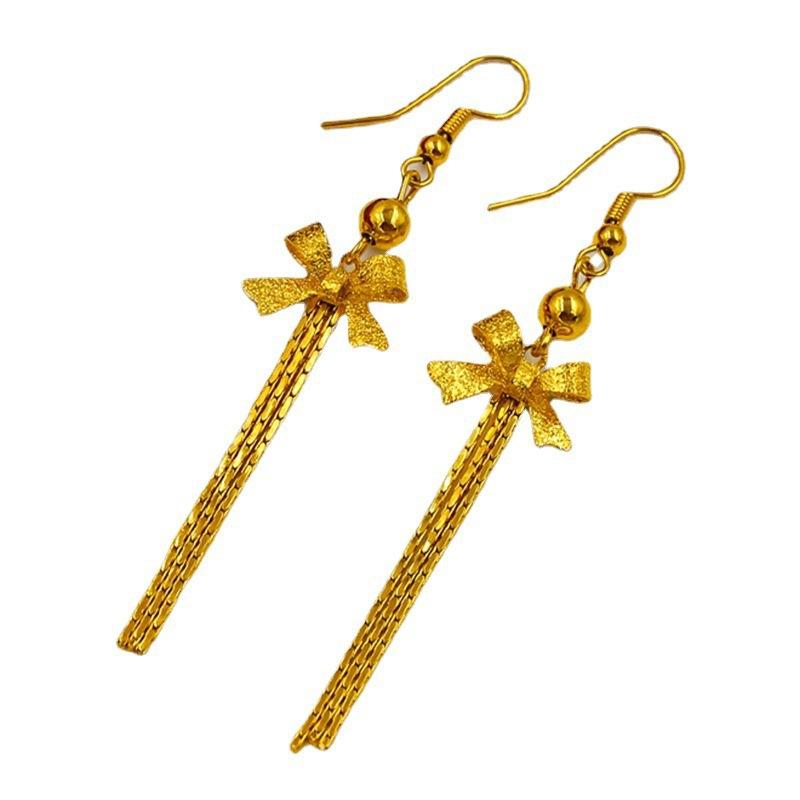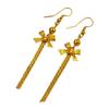 Aretes largos de borla con lazo de flor pequeña, latón chapado en oro, aretes para mujer al por mayor, suministro directo de fabricantes de moda japonesa y coreana