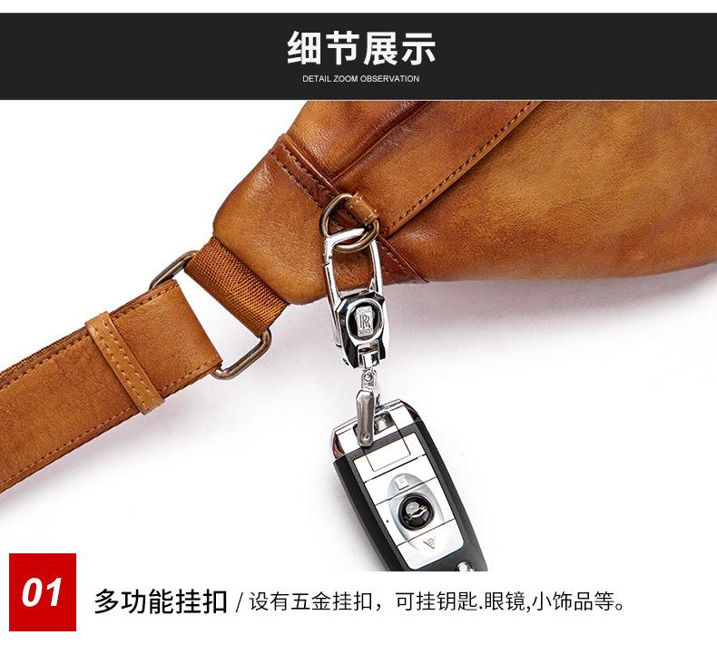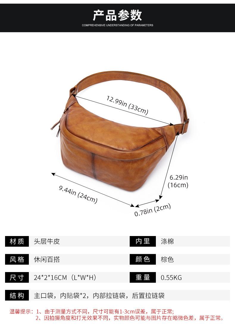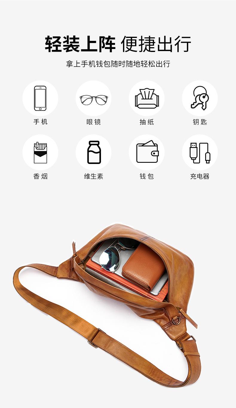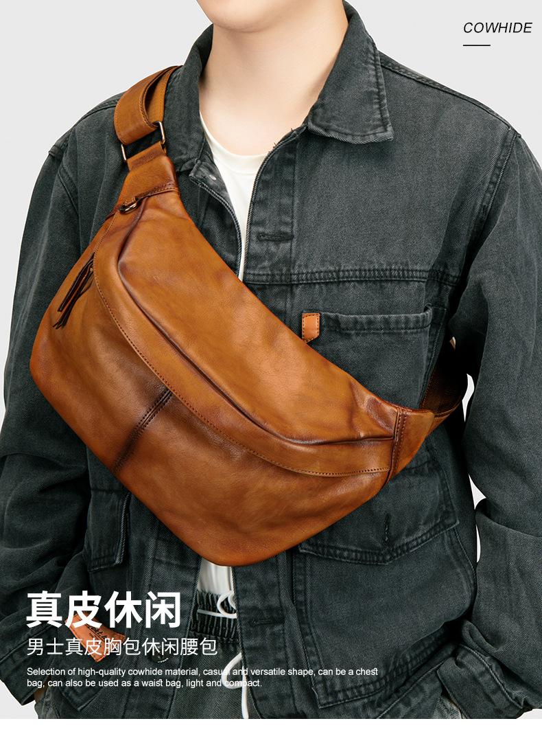 Mochila para hombre de piel de vaca de primera capa europea y americana transfronteriza, bolso de hombro de comercio exterior, bolso bandolera con textura, bolso de pecho ligero para hombre de cuero genuino