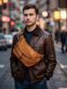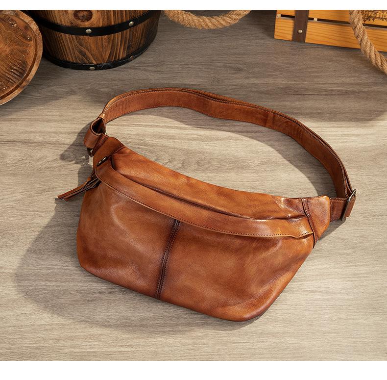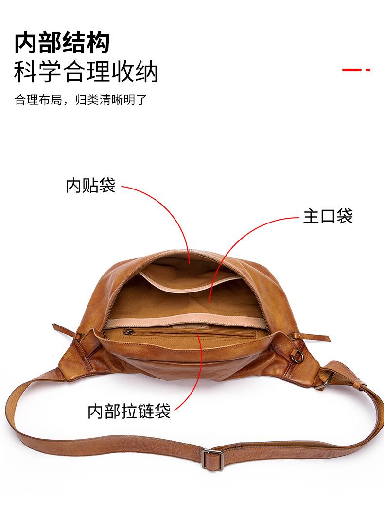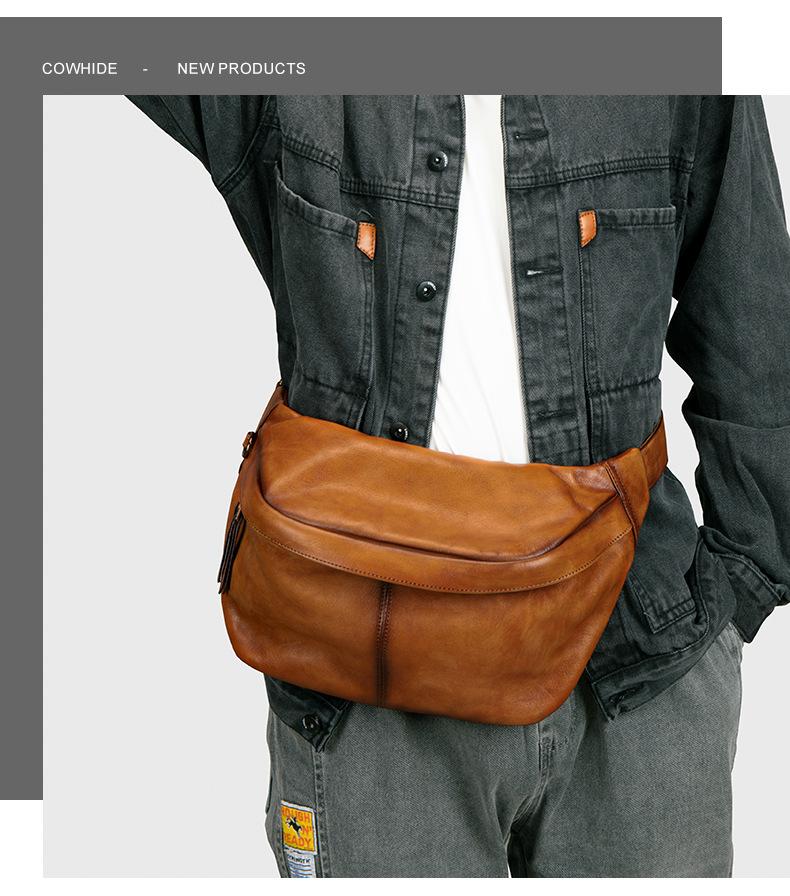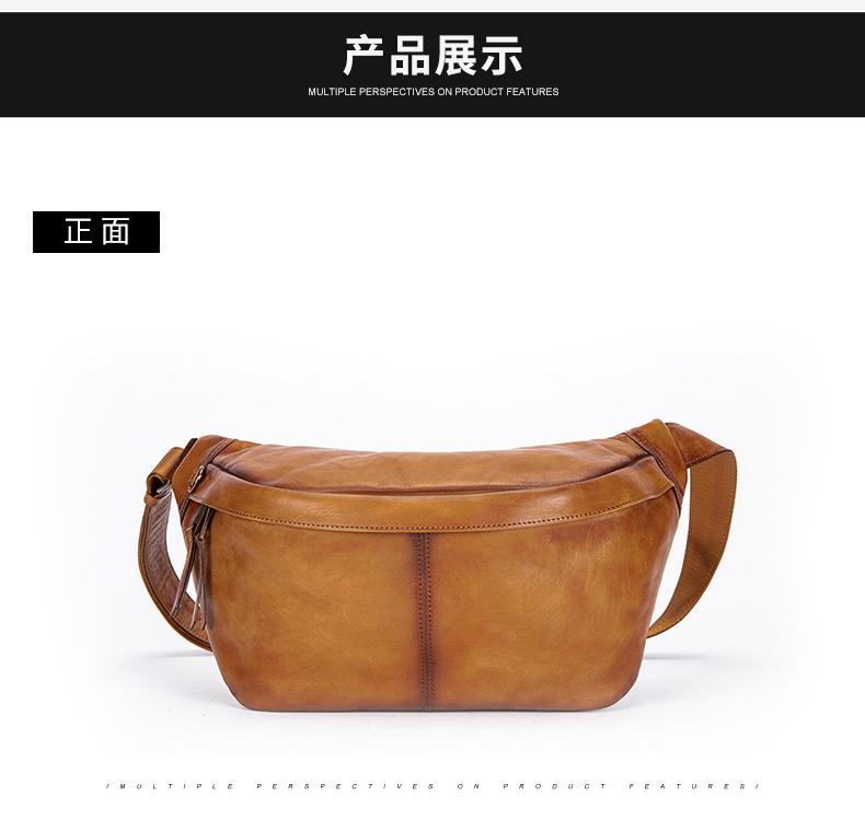 Mochila para hombre de piel de vaca de primera capa europea y americana transfronteriza, bolso de hombro de comercio exterior, bolso bandolera con textura, bolso de pecho ligero para hombre de cuero genuino