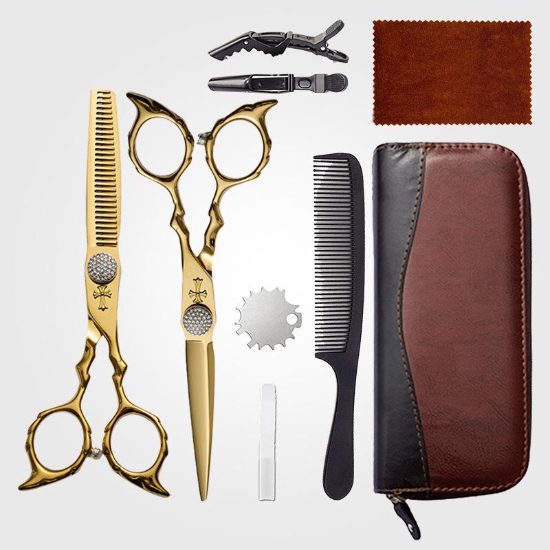 115 gold 6inch flat cut, 115 gold 6inch dental scissors [hair removal volume 25-30%], 115 flat tooth 9 piece set