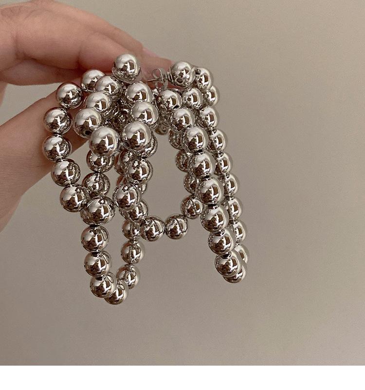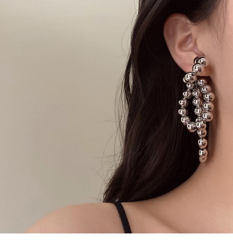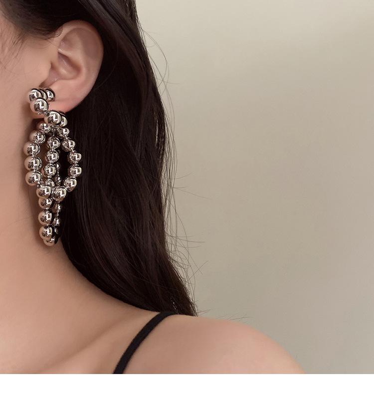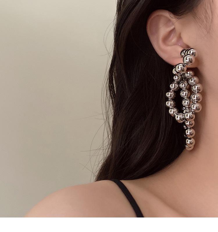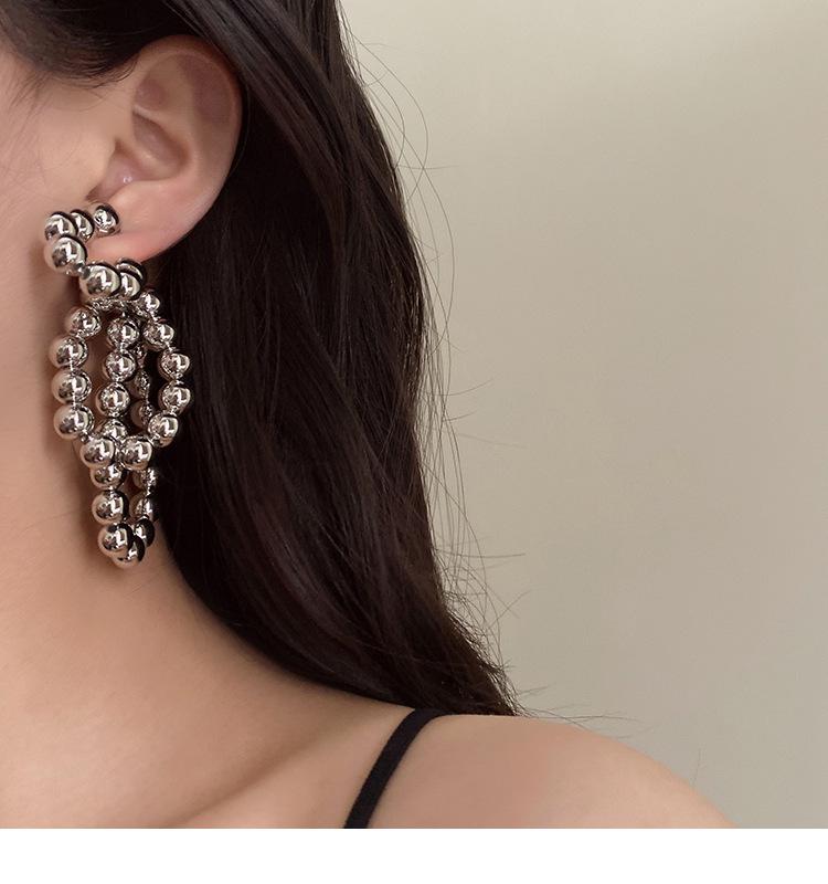 Aretes Plateados con Cuentas Tejidos a Mano para Mujer Accesorios Sexy de Nicho Diseño Personalizado Sentido del Diseño Aretes Europeos y Americanos Exagerados