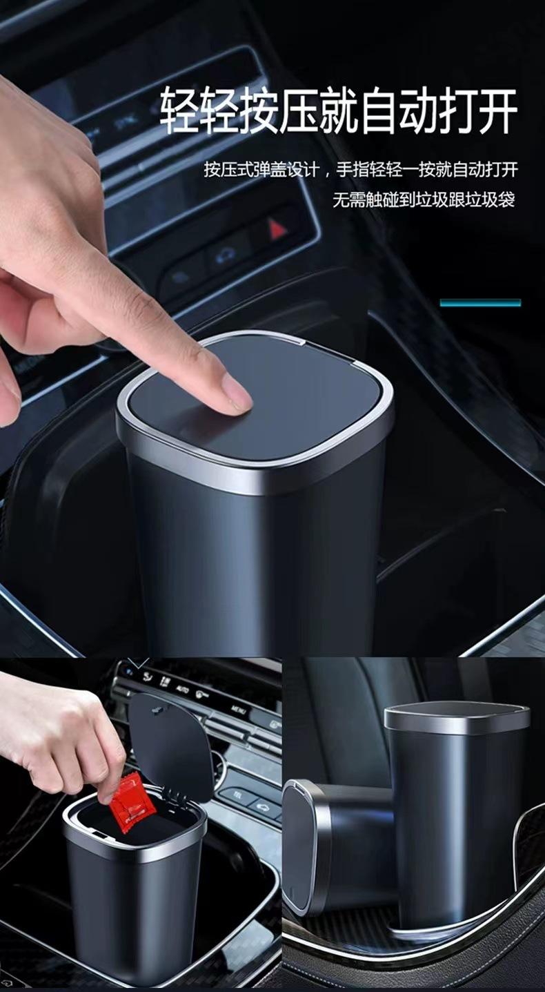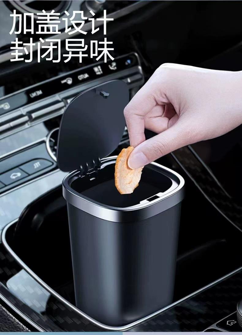 Selección estricta de bote de basura para coche Mini cubo de almacenamiento creativo escritorio de la fila delantera con tapa bote de basura portátil multifuncional