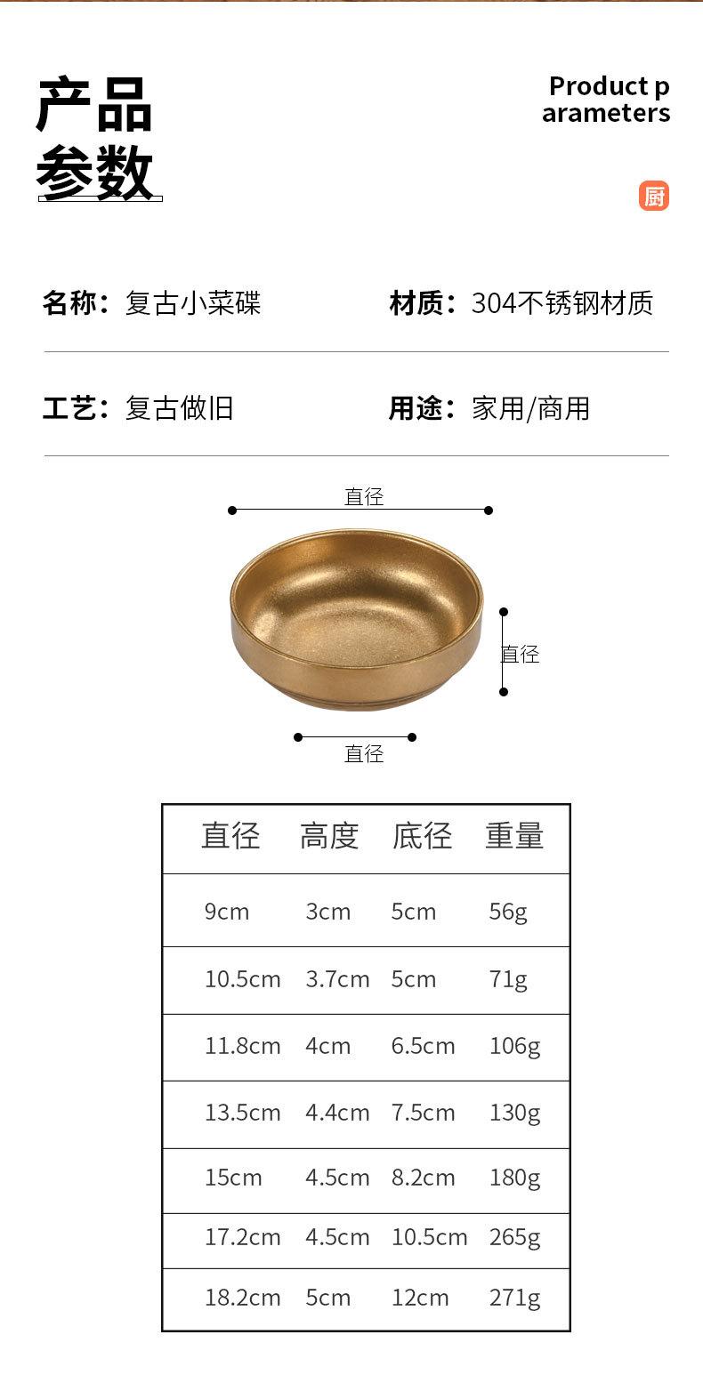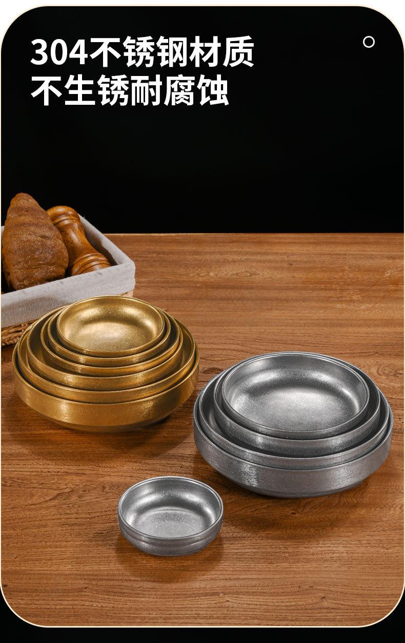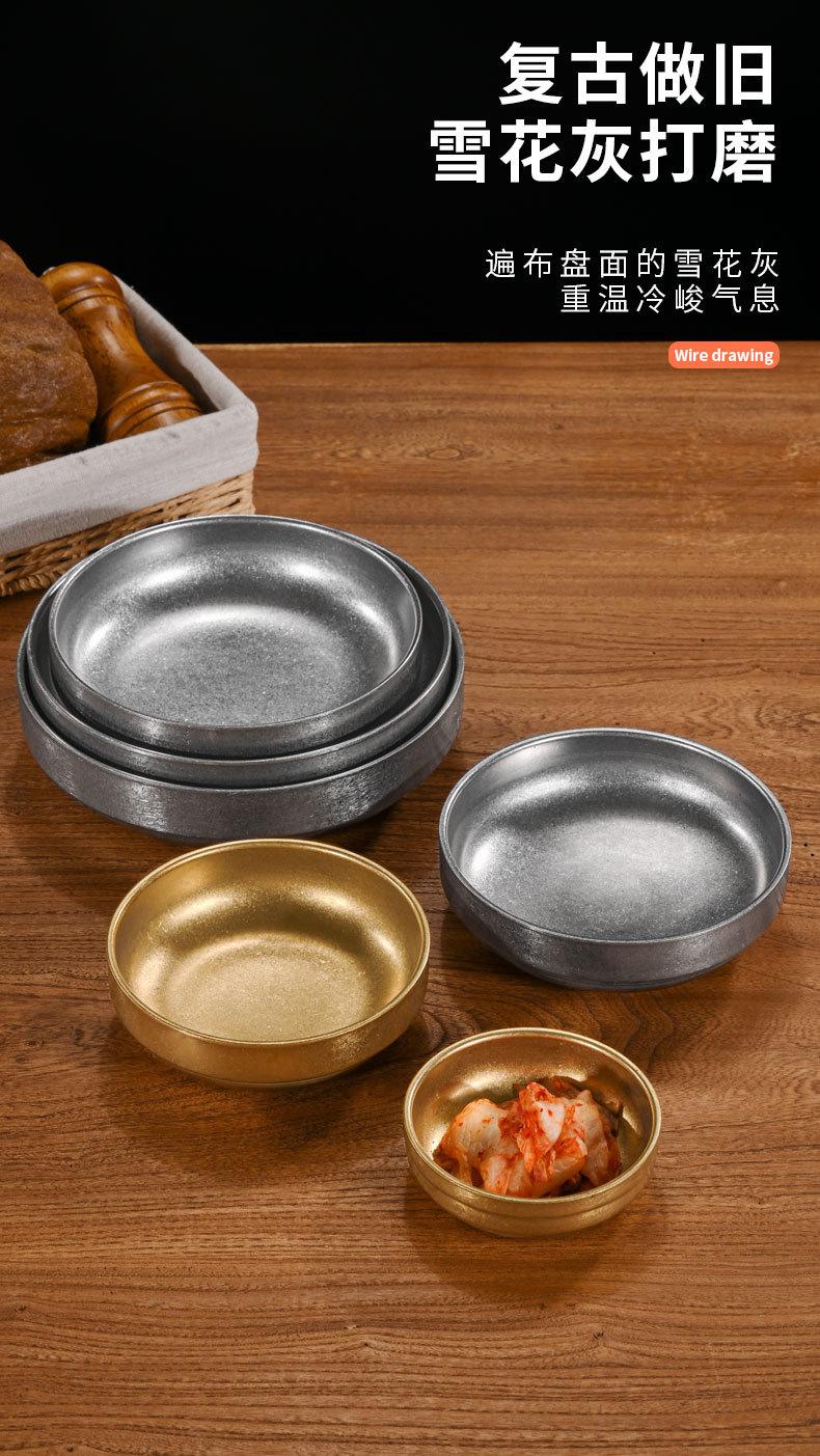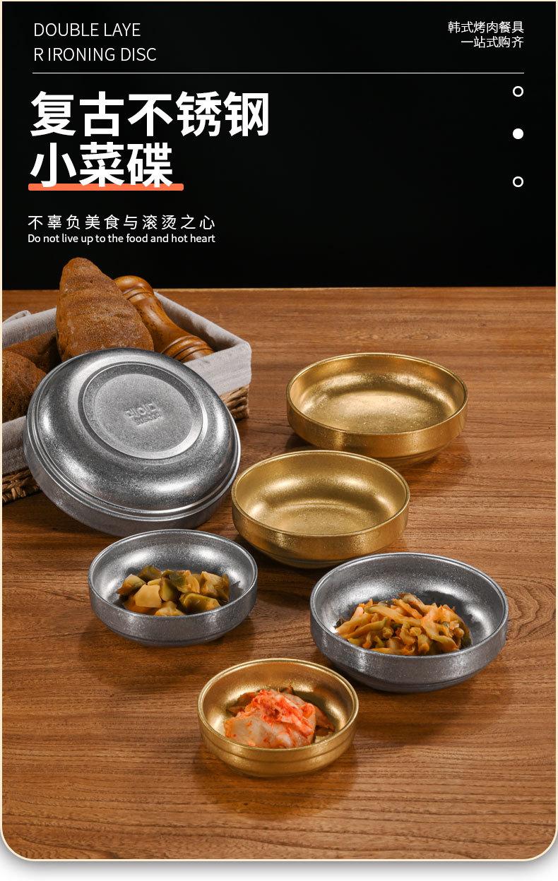 Plato de condimentos de acero inoxidable 304 de estilo vintage, plato comercial de doble capa, plato de encurtidos de estilo coreano, tazón pequeño para cocinar, plato antiguo
