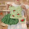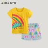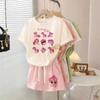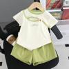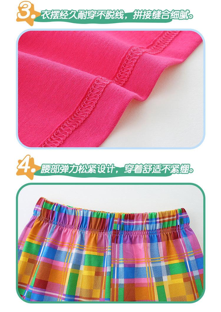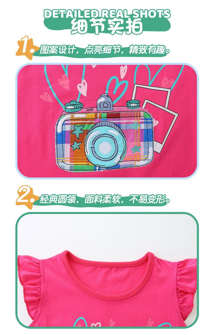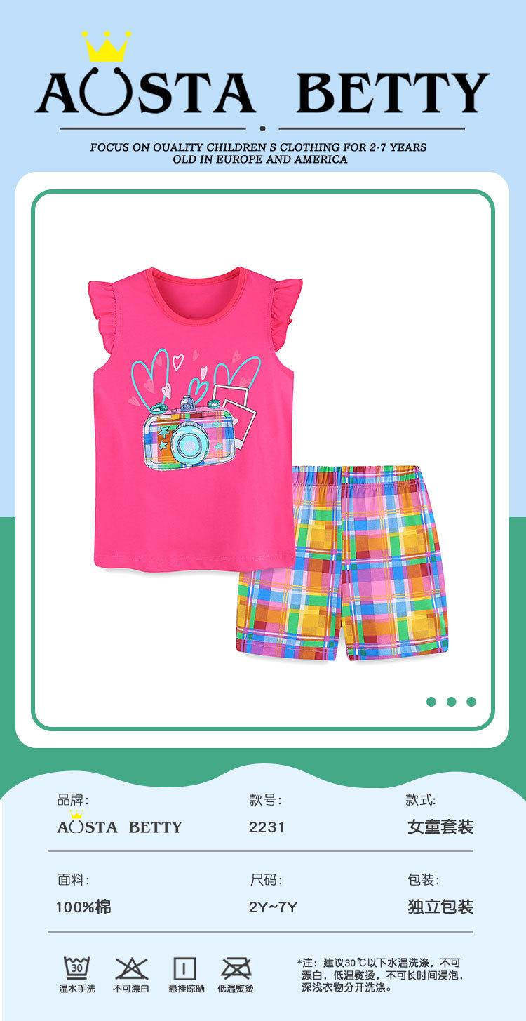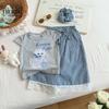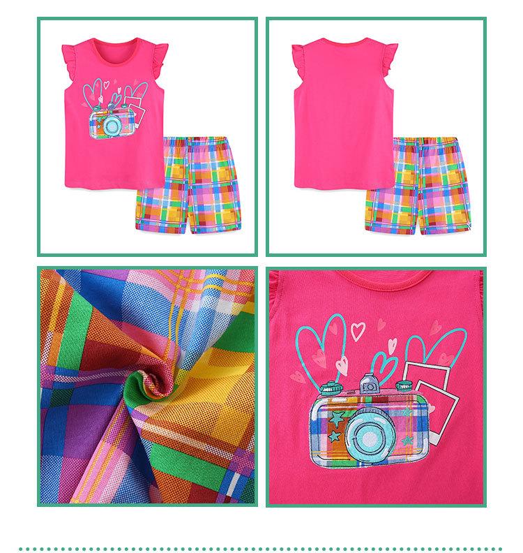 Traje de Verano Nuevo para Niñas de Manga Corta Conjunto de Dos Piezas Casual de Estilo Europeo y Americano para Niños Bordado de Dibujos Animados con Cuello Redondo Lote Mixto