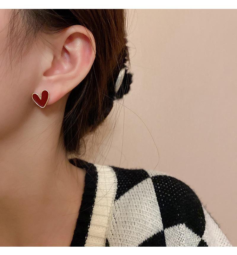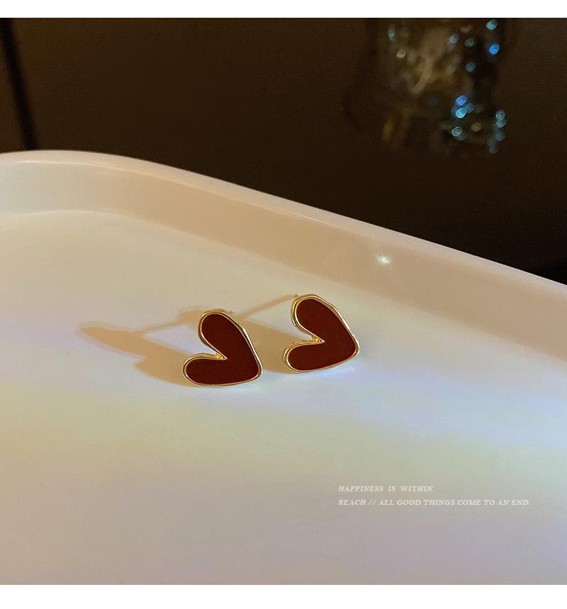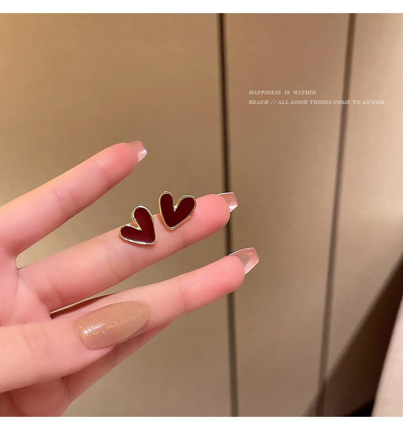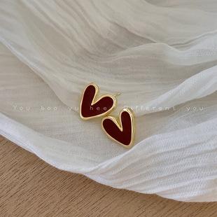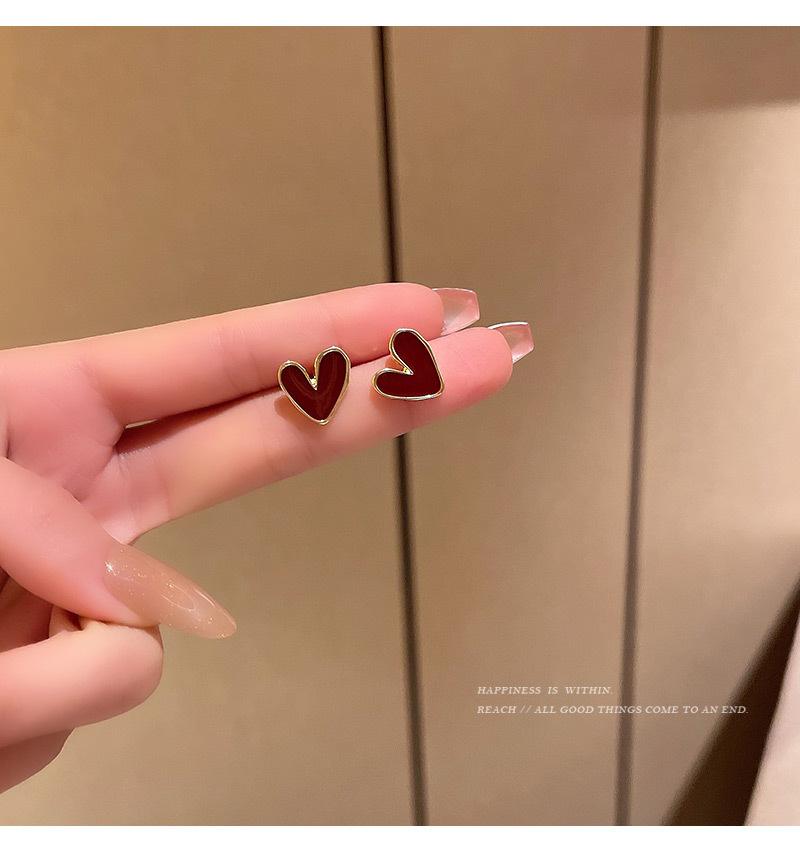Pendientes de Amor Irregulares con Gota de Aceite Plata S925 para Mujer Pendientes Retro Franceses de Lujo Ligero Nicho Pendientes Sencillos con Temperamento