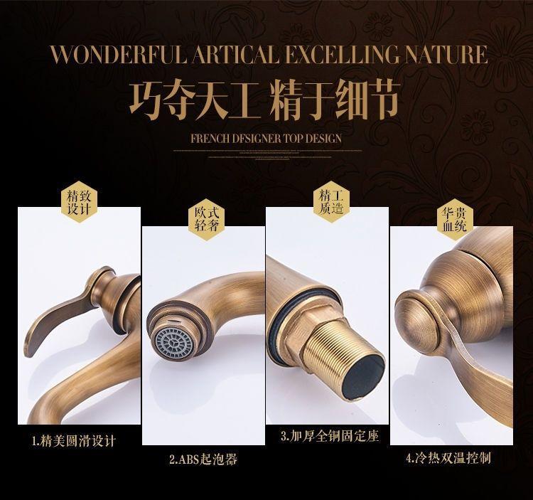 Grifo retro de estilo europeo de cobre para baño, grifo para lavabo de mueble de baño, grifo para encimera, grifo frío y caliente, fábrica de origen