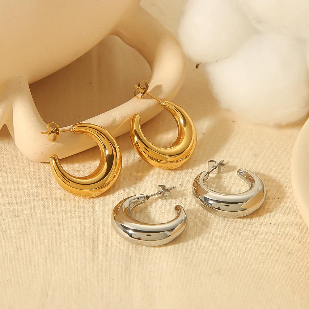 Compra Pendientes huecos en forma de C de media luna de celebridades de Internet europeas y americanas, de acero inoxidable en oro de 18 quilates, personalizados, de alta gama para mujer. al por mayor en Joom.pro