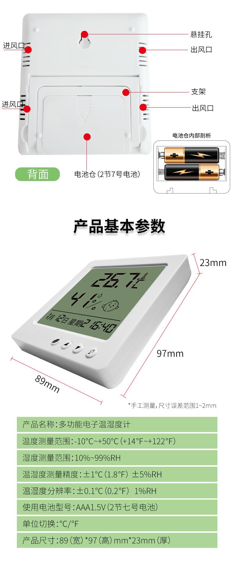 Termómetro e higrómetro con retroiluminación de pantalla grande LX8113