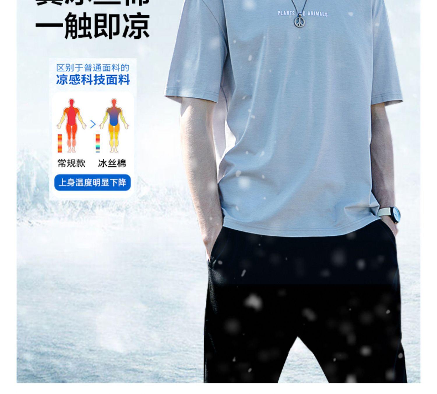 Camiseta de manga corta holgada micro de algodón de seda de hielo mejorada para hombre 2024, camiseta de media manga de algodón mercerizado de moda de verano