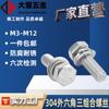Tornillos de combinación triple de hexágono interior grado 4.8, cabeza cilíndrica con recubrimiento de color, pernos de combinación triple con arandela plana y arandela elástica combinadas