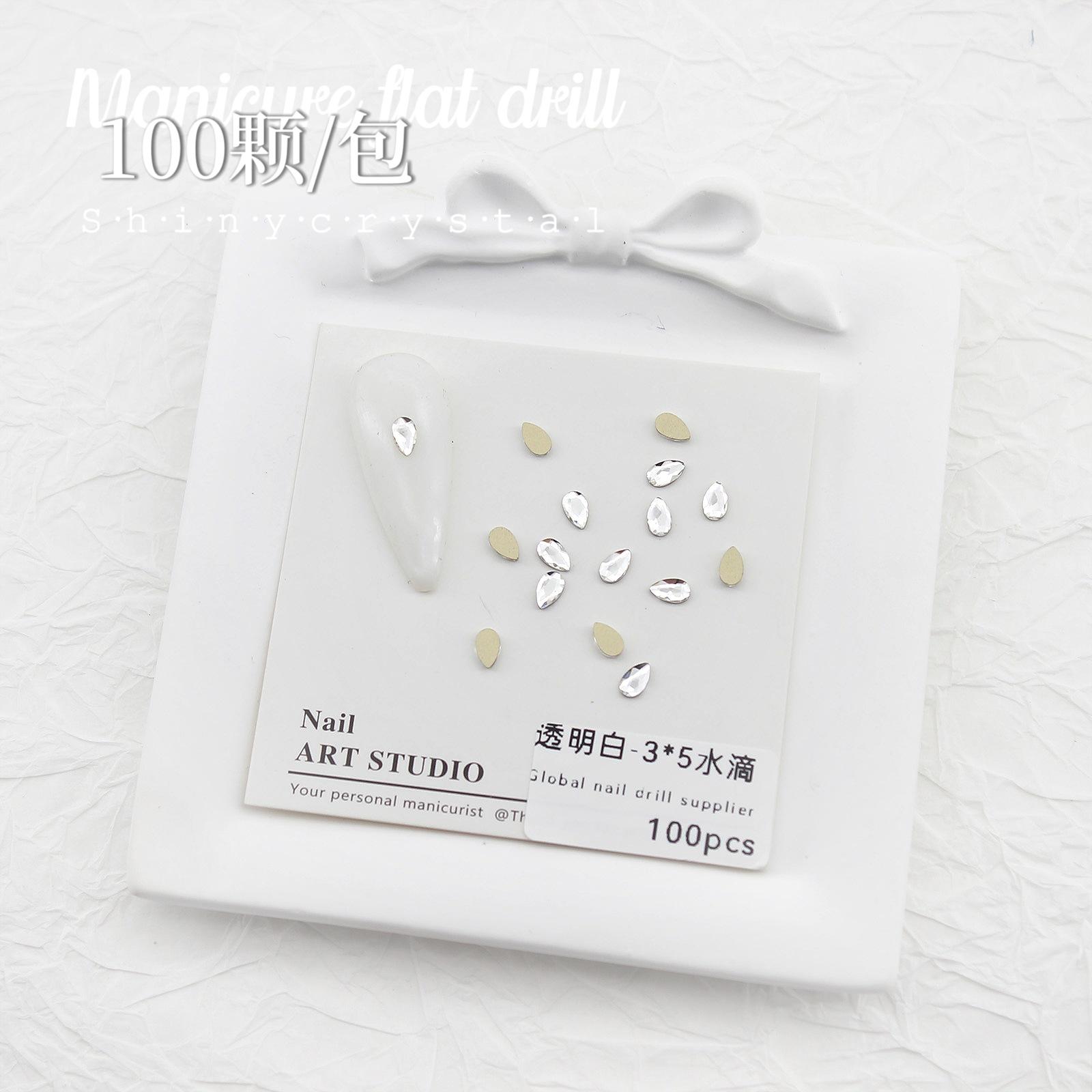 Compra Arte de uñas blanco de fondo plano con forma especial de diamante, tamaño grande y pequeño, mini gotas de agua, diamante cuadrado transparente, joyería, diamante blanco largo. al por mayor en Joom.pro