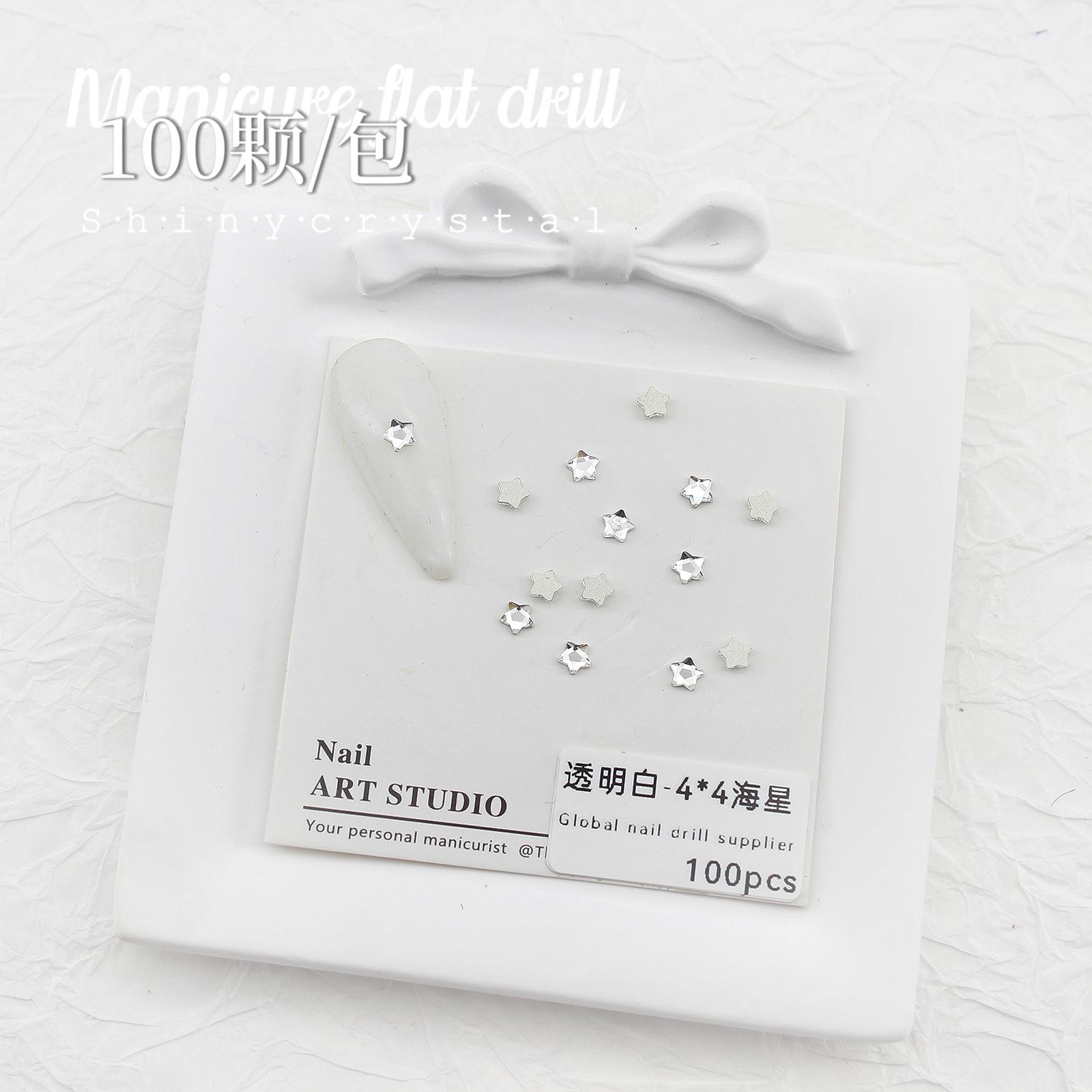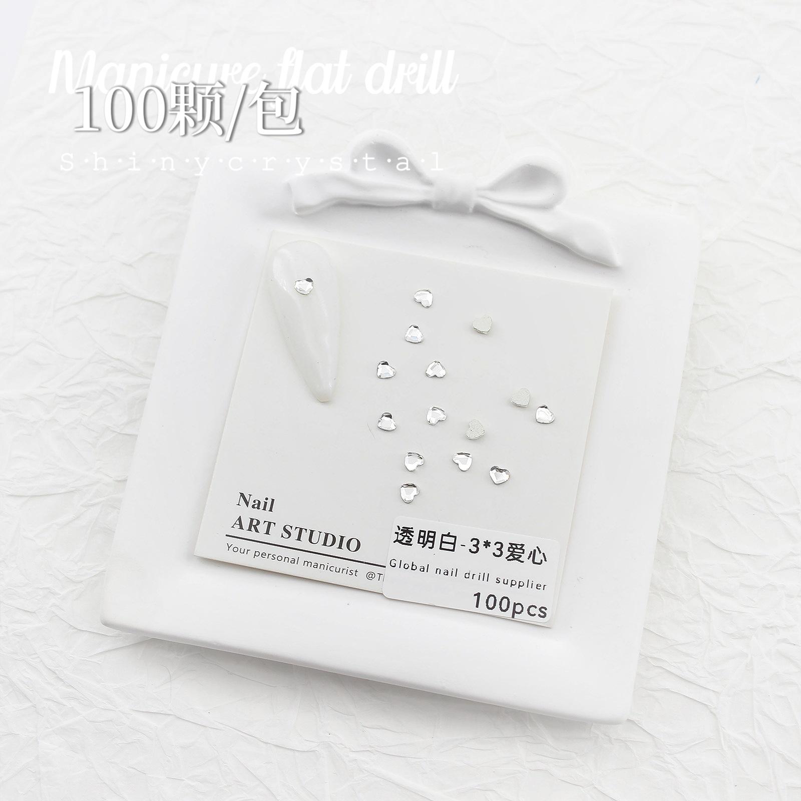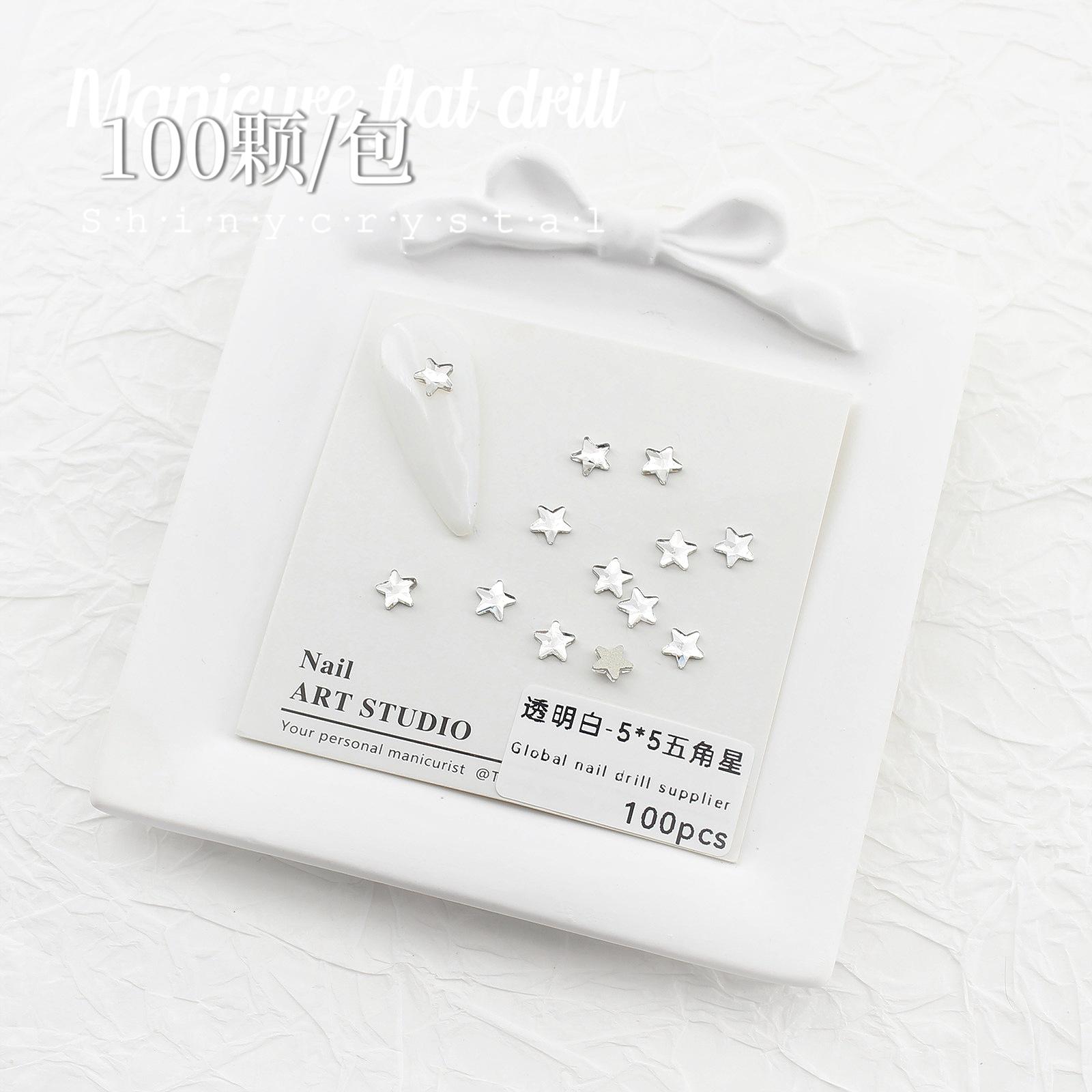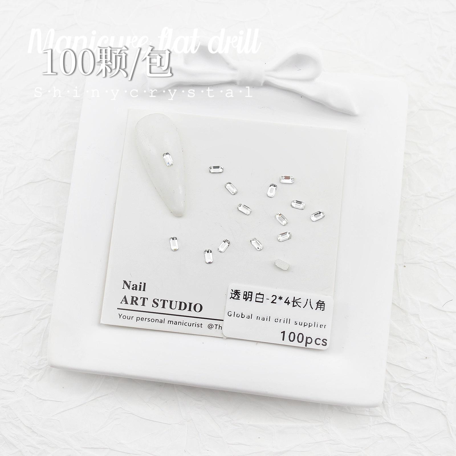 Arte de uñas blanco de fondo plano con forma especial de diamante, tamaño grande y pequeño, mini gotas de agua, diamante cuadrado transparente, joyería, diamante blanco largo.