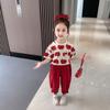 Traje de manga corta con bordado de estilo europeo y americano para niñas, nuevo jersey de dibujos animados de verano, traje de algodón tejido de dos piezas para niños