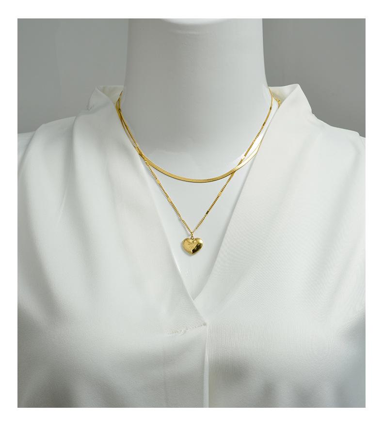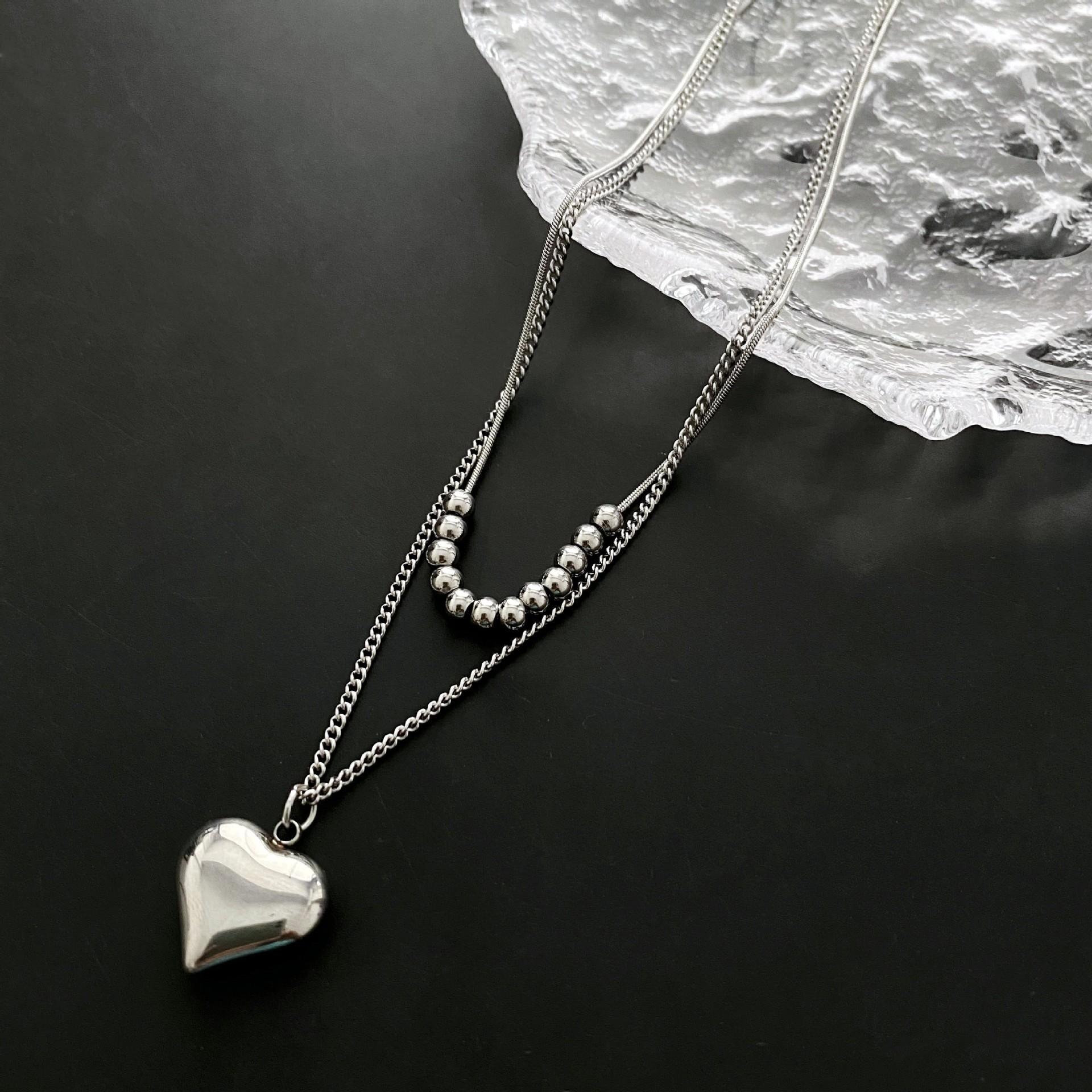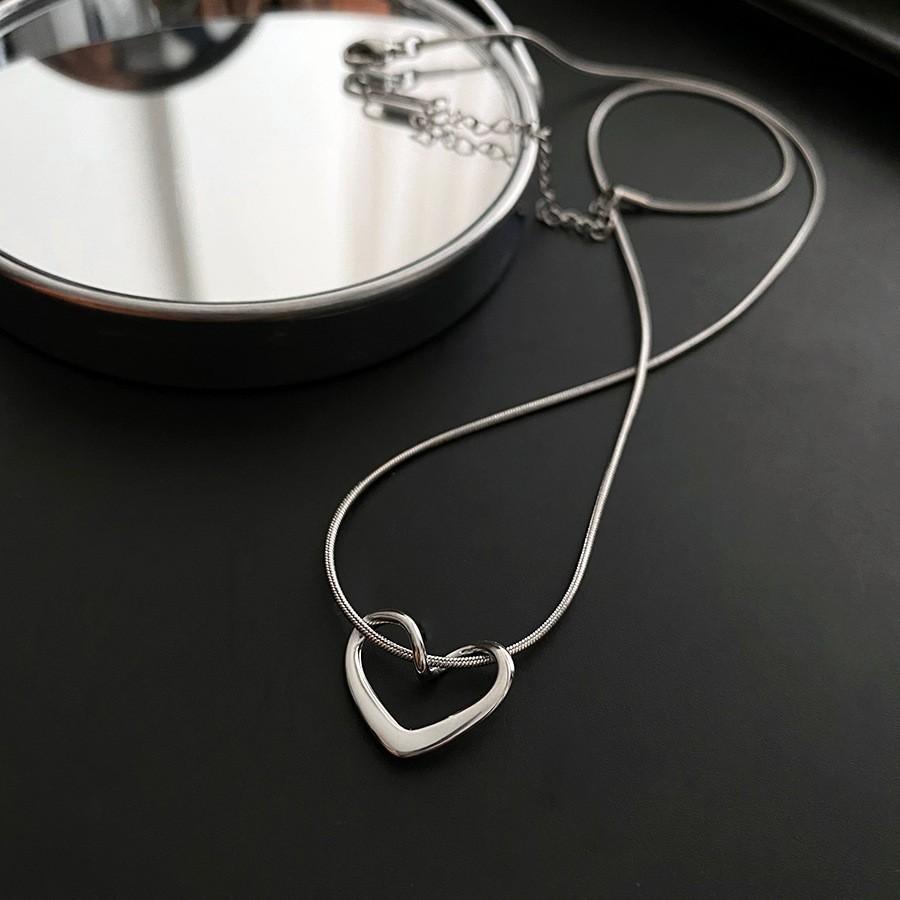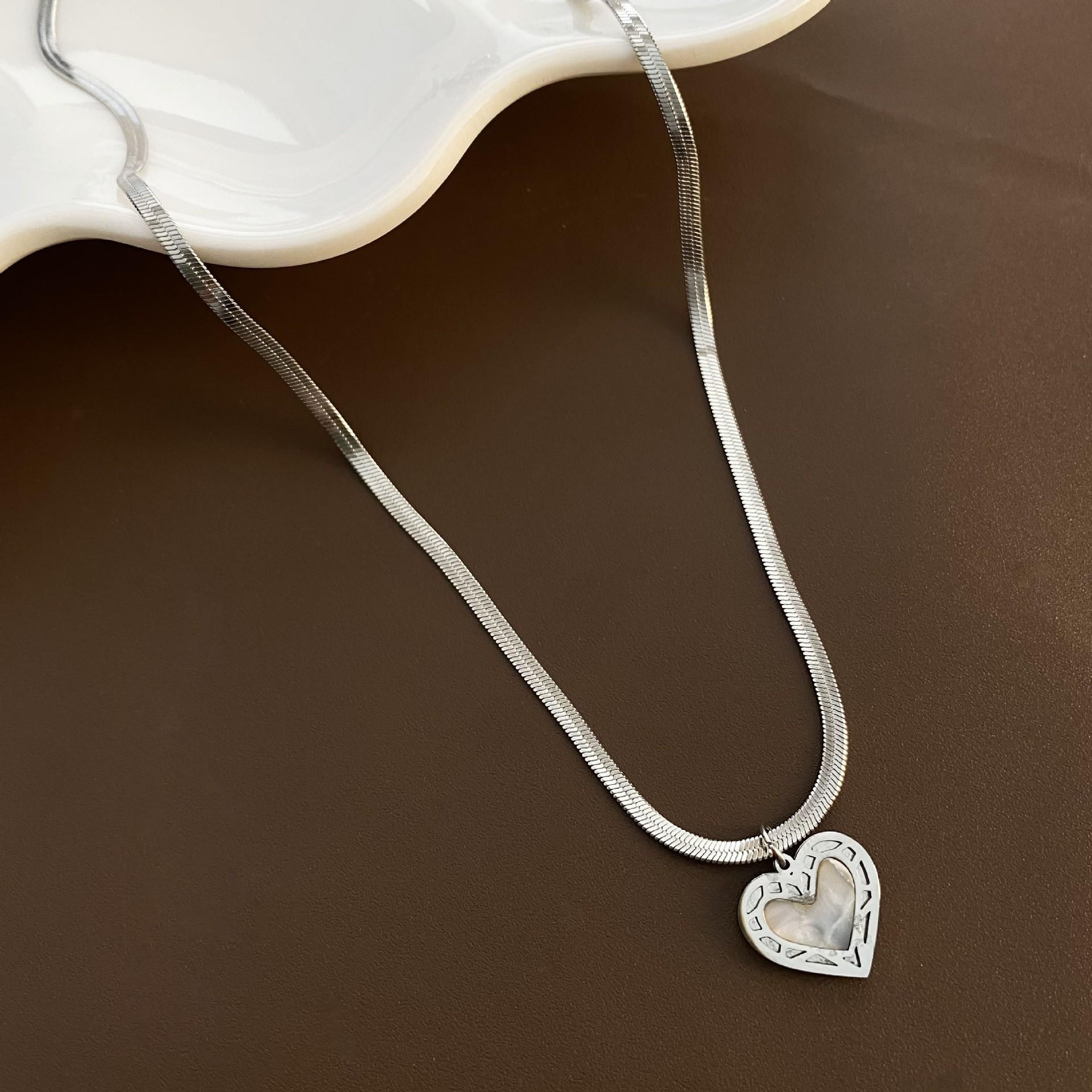 Acero de Titanio Simple Acero Inoxidable Collar Joyería para Mujer Versátil Nicho Colgante de Amor Libre de Color Cadena de Espiga Collar Apilado