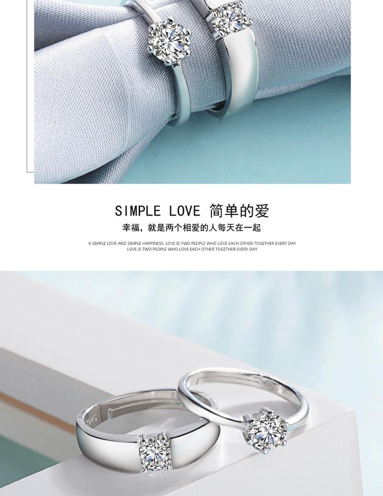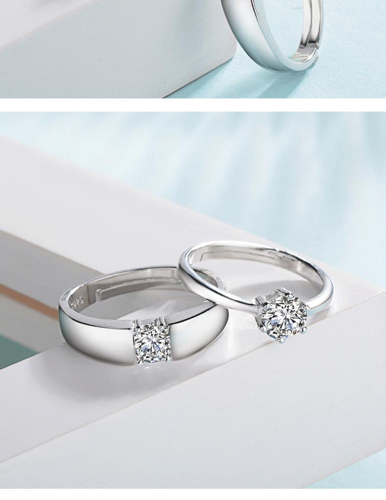 Anillo de Pareja Caliente en Vivo j Anillo de Pareja de Seis Garras de Zirconia Coreana Diamante Simulado Propuesta Regalo de San Valentín