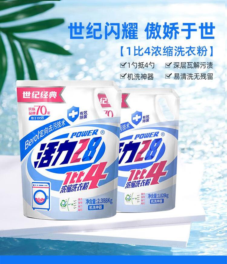 Detergente en polvo concentrado Factory Straight Hair Vitality 28, bolsa de 1 a 4, espuma baja, fácil de enjuagar, cuidado del color, desodorante, lavado a máquina