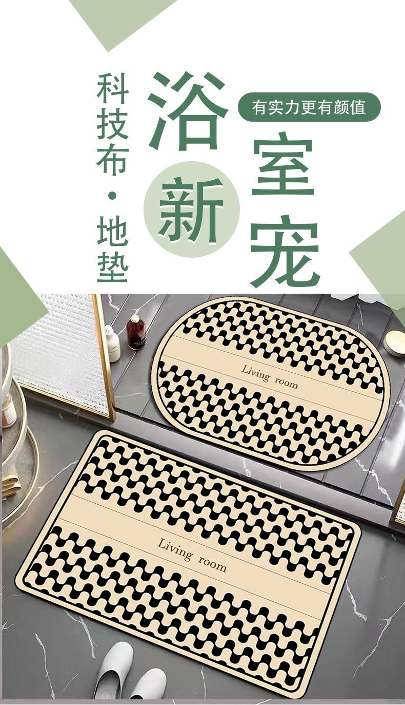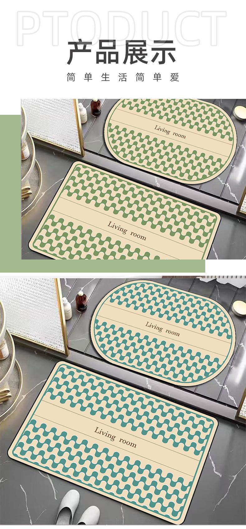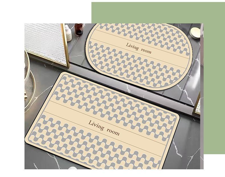 Tapete de piso de barro diatomáceo con patrón de onda francesa para baño, absorbente, de secado fácil, antideslizante, para el hogar, lavable, tapete de puerta, tapete de piso