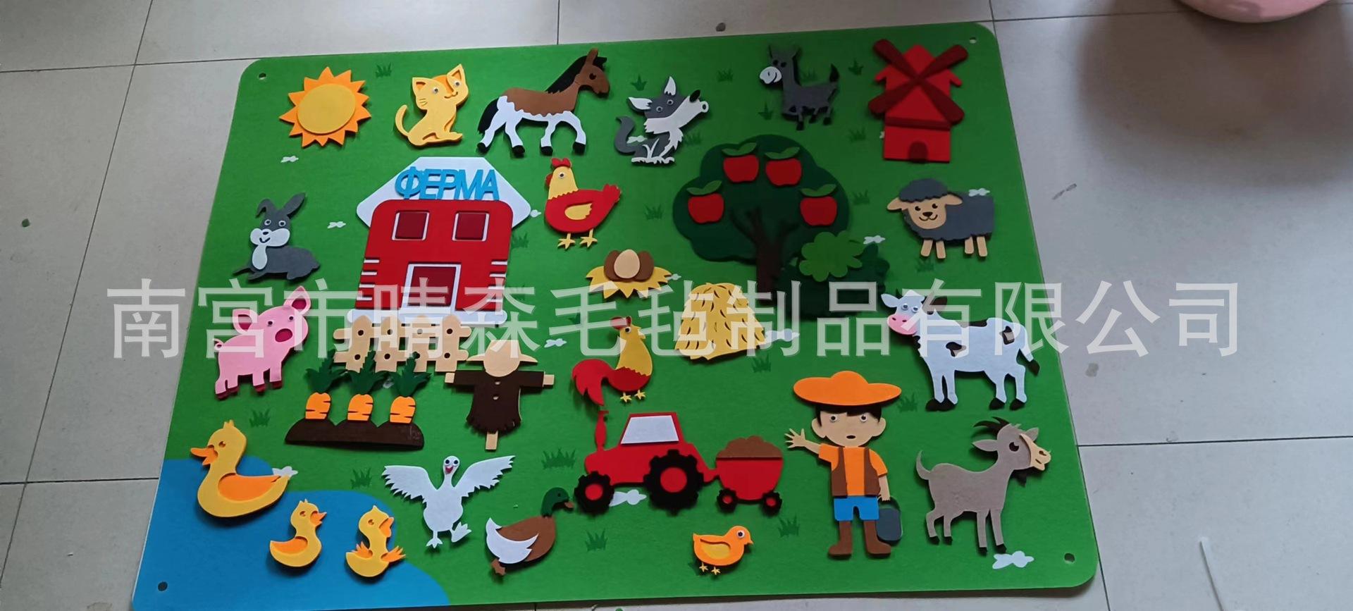 Paquete de juego estéreo de tablero de aprendizaje con guion gráfico de animales de granja de fieltro para educación temprana infantil transfronteriza de Amazon
