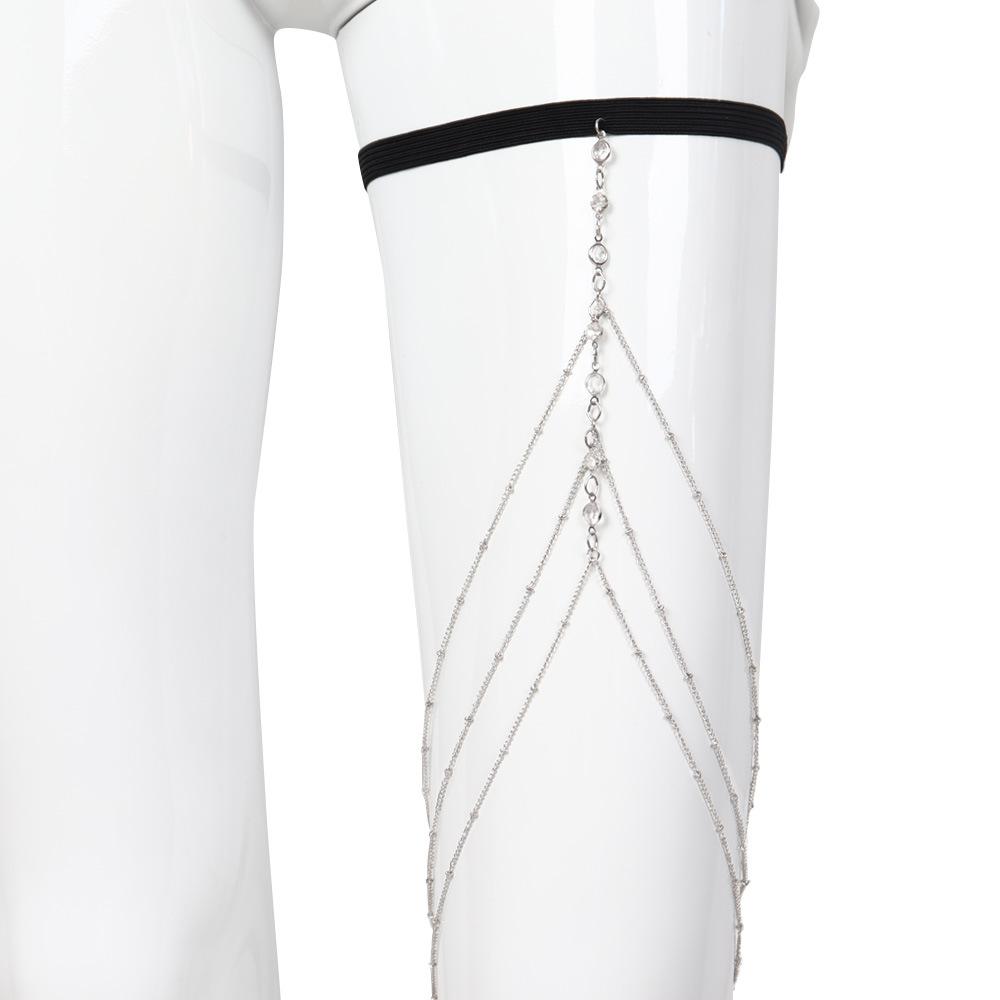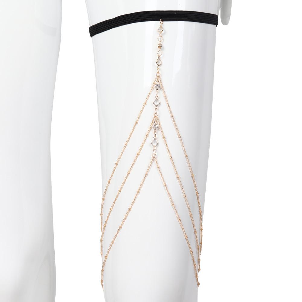 Nueva cadena de pierna multicadena con decoración de piernas transfronterizas de Europa y Estados Unidos, cadena de muslo sexy dorada, cadena de cuentas con clip de diamante para mujer, cadena corporal