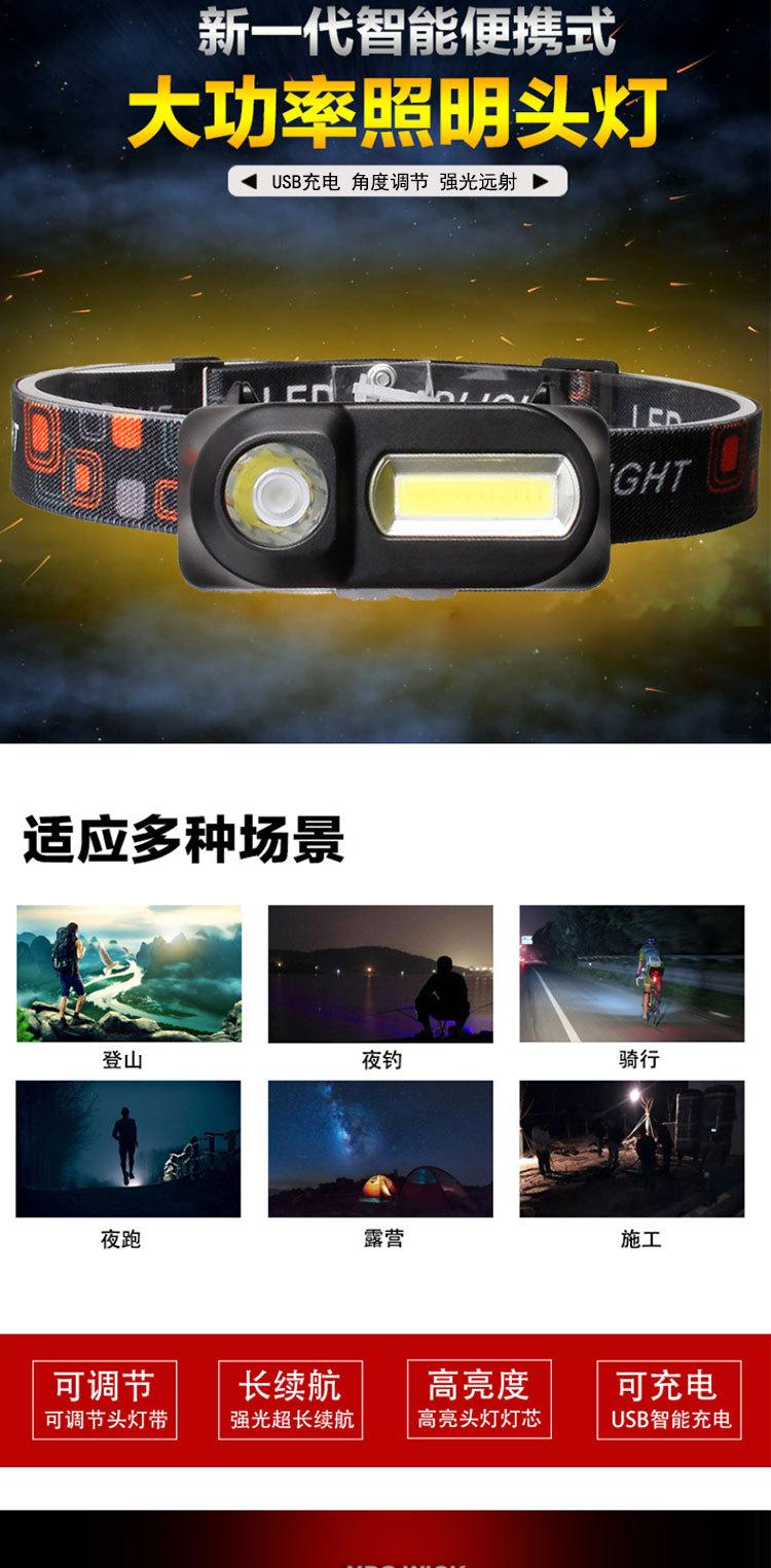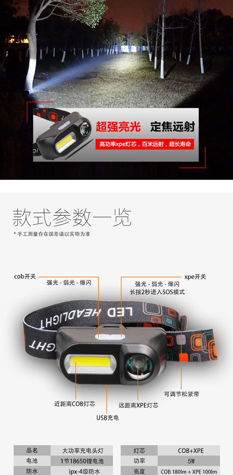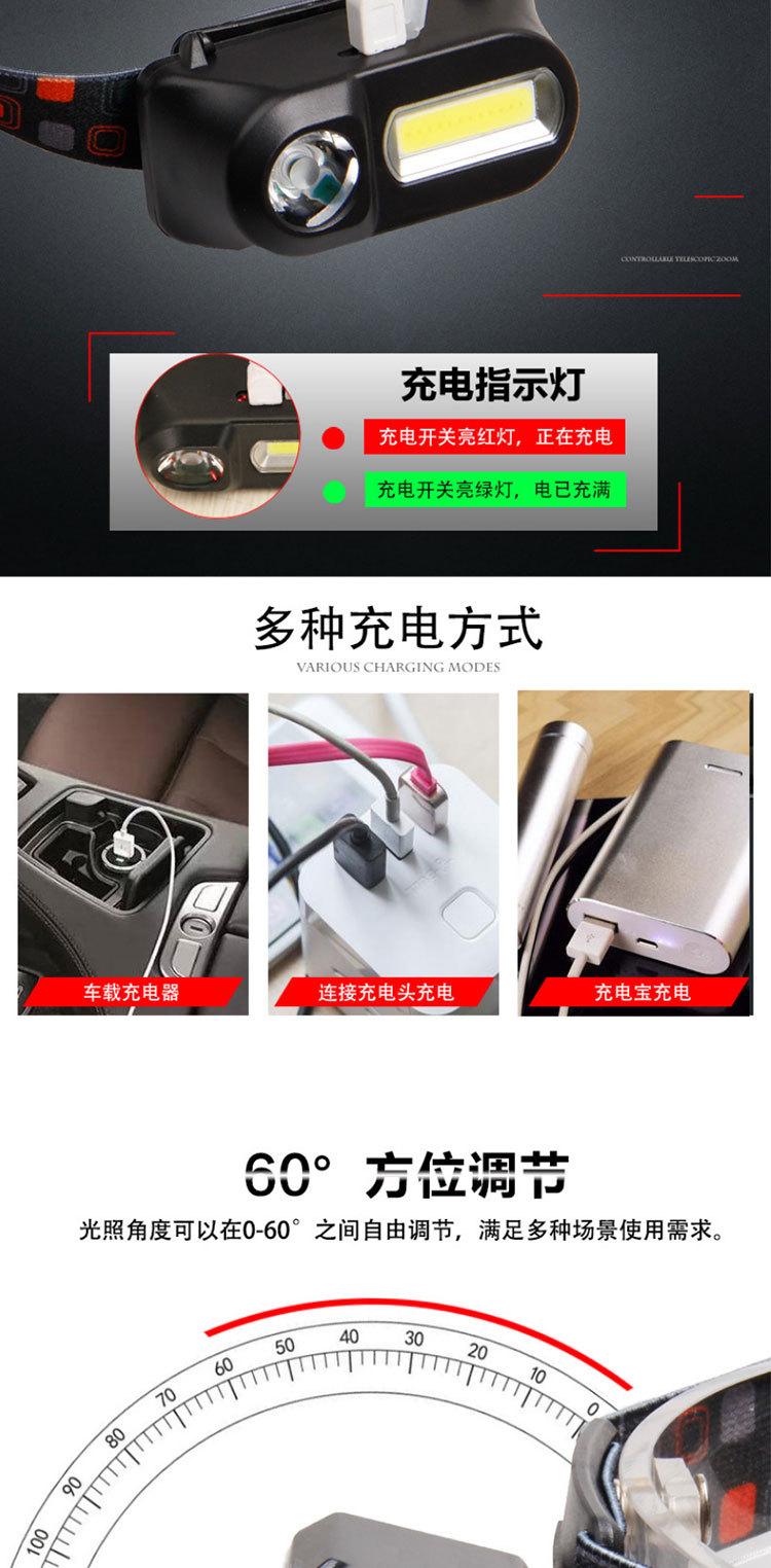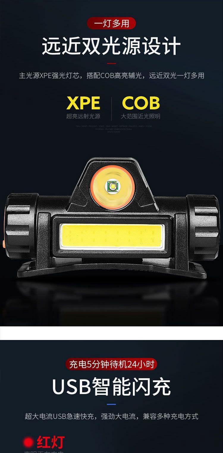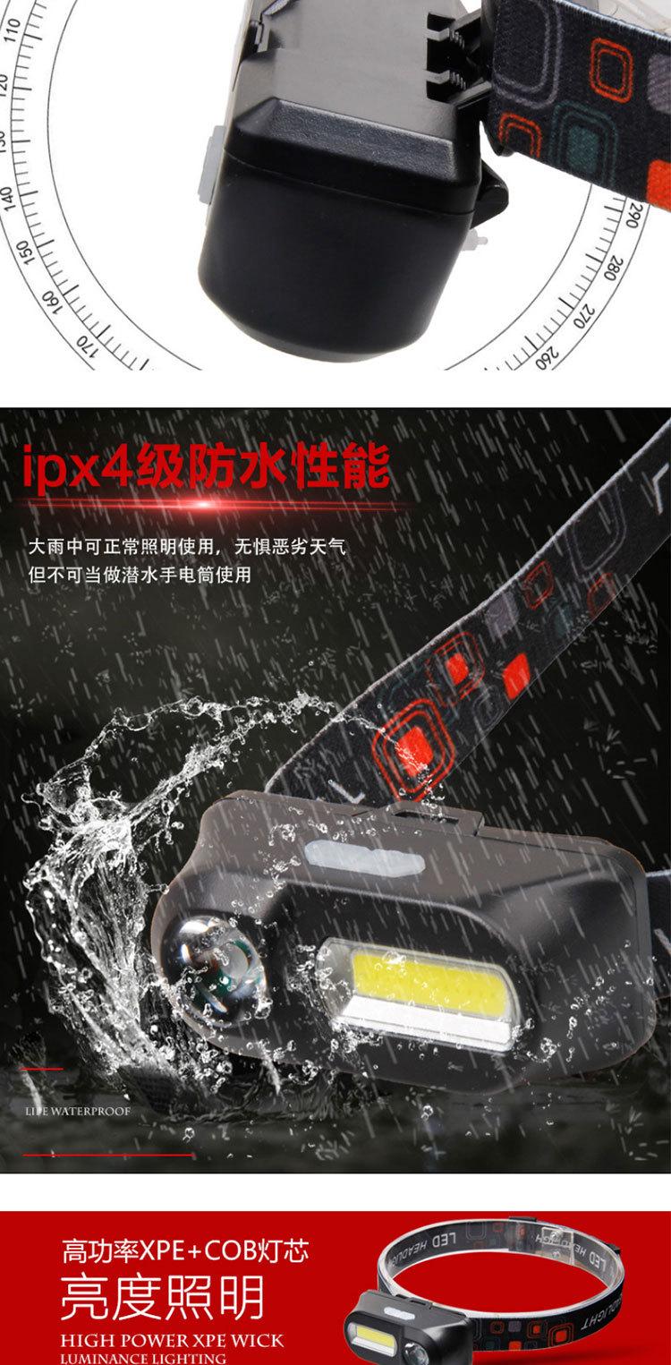 Lámpara de minero de inducción con carga por interfaz USB, linterna COB de emergencia para pesca al aire libre, luz potente para acampar y hacer senderismo.