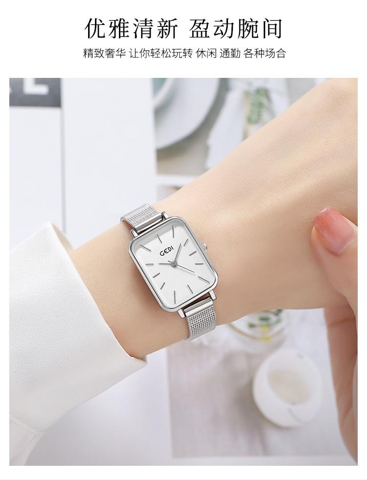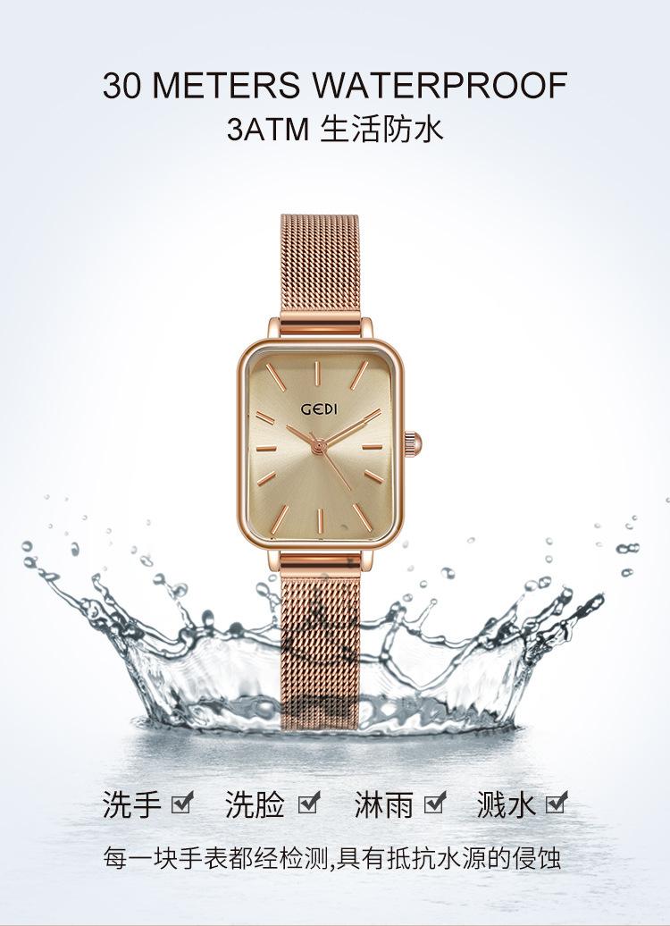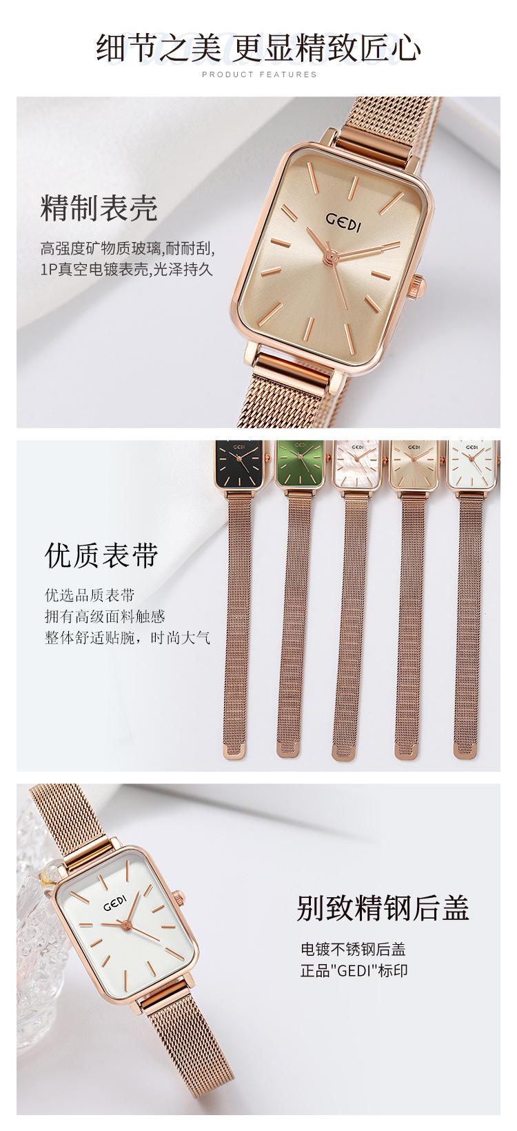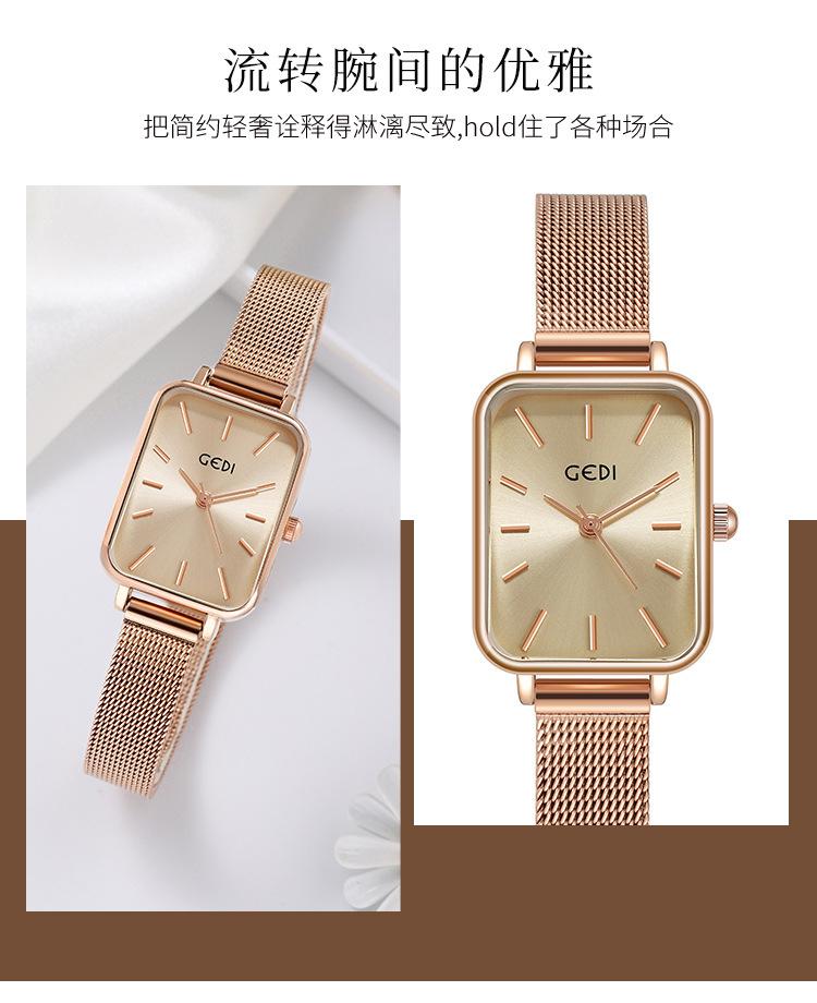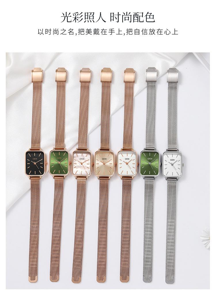 Reloj Goldie para mujer, de cuarzo, ultrafino, de acero inoxidable, con correa de malla resistente al agua y placa cuadrada pequeña, de temperamento sencillo.