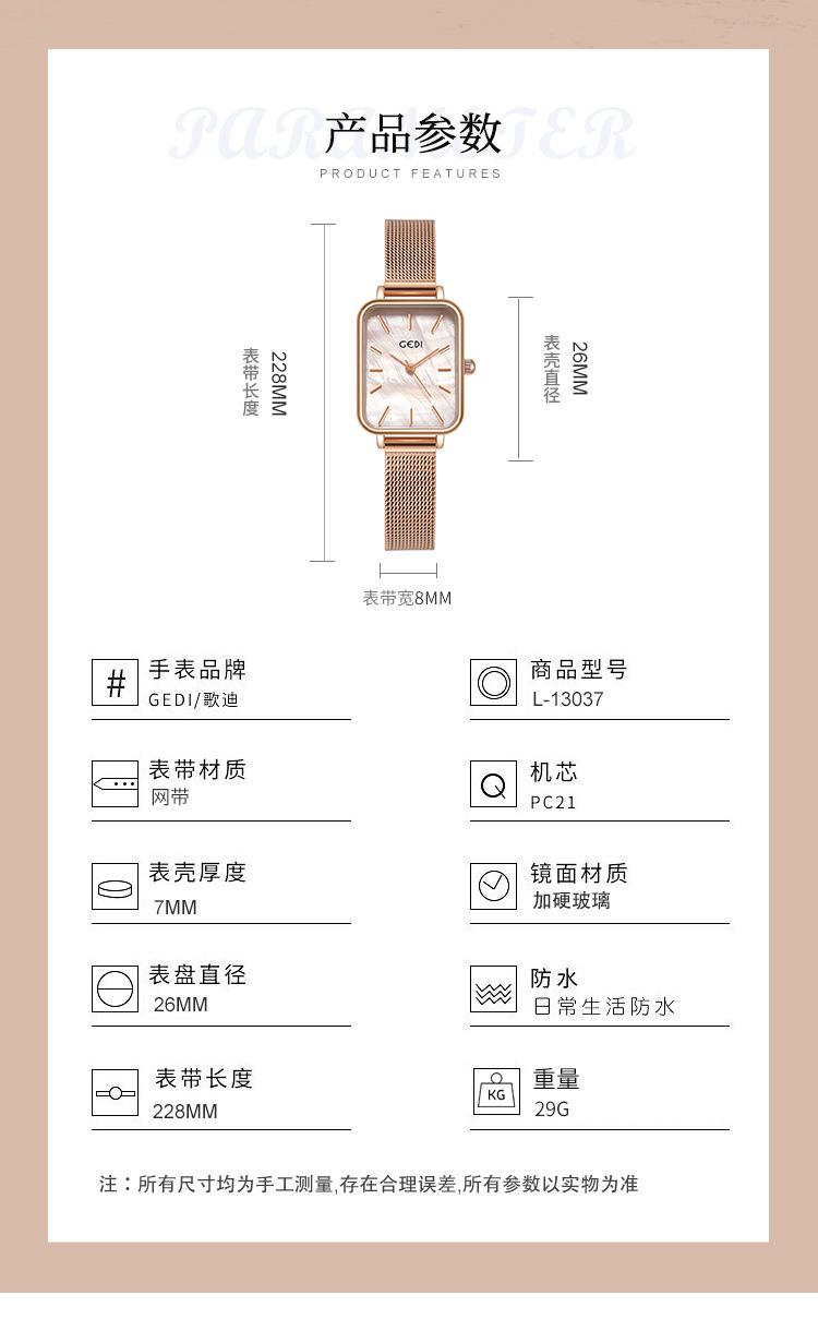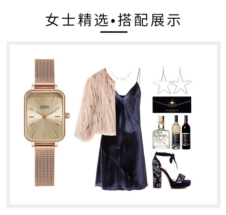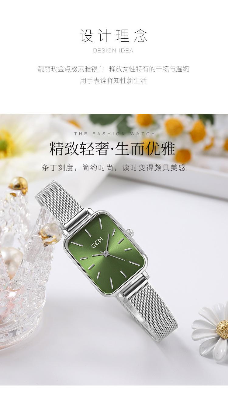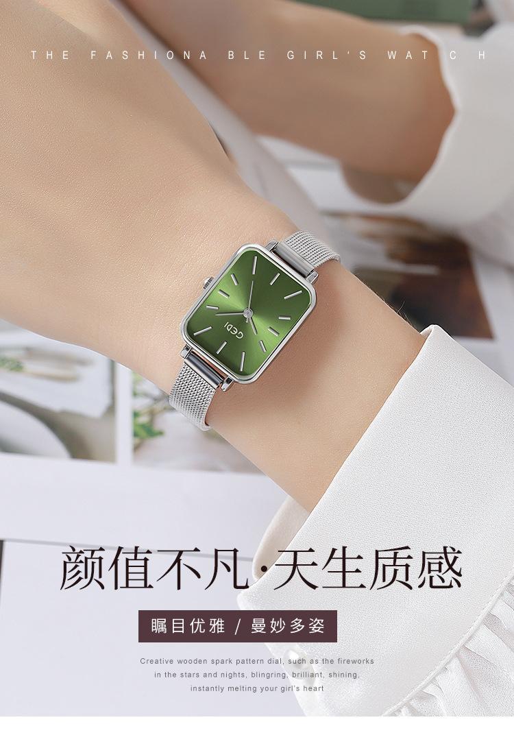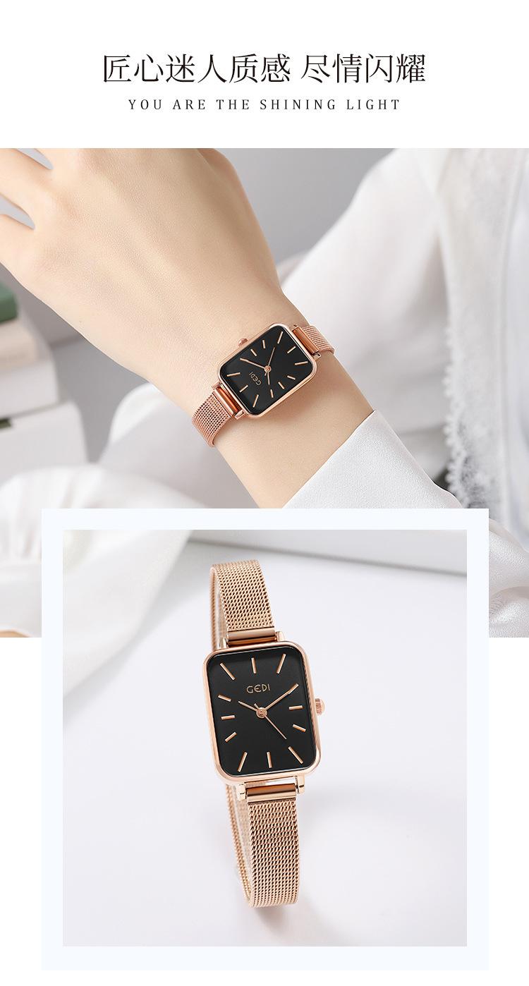 Reloj Goldie para mujer, de cuarzo, ultrafino, de acero inoxidable, con correa de malla resistente al agua y placa cuadrada pequeña, de temperamento sencillo.