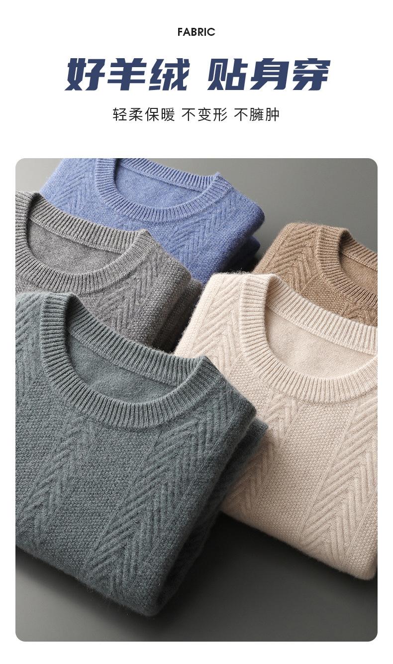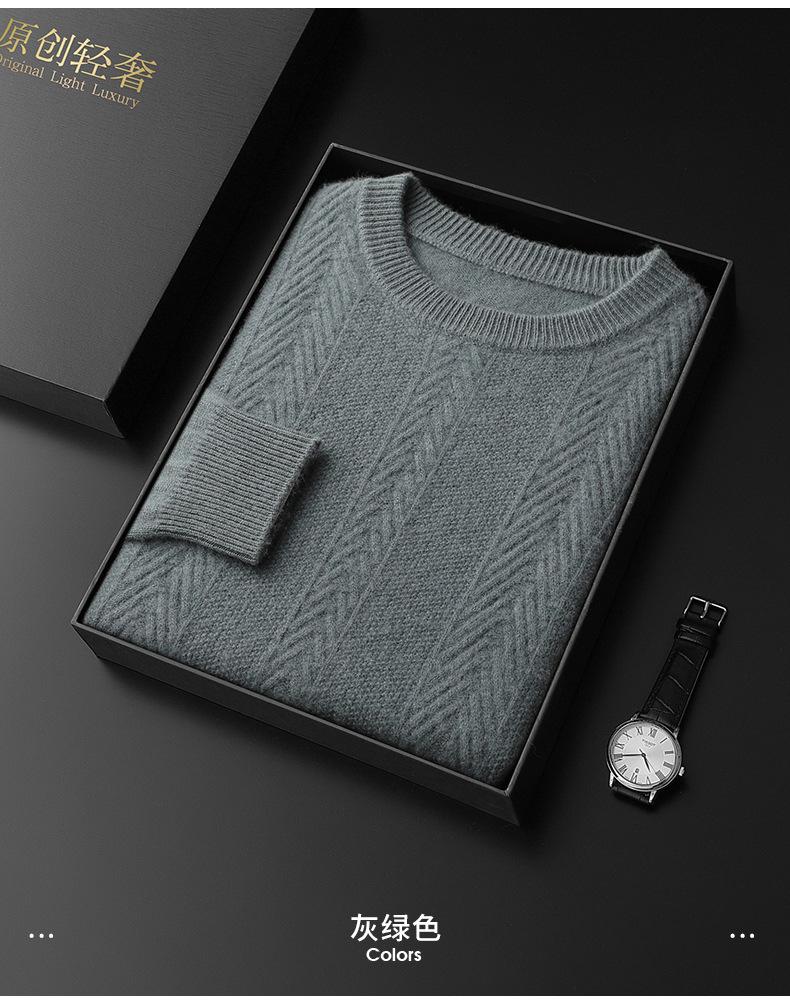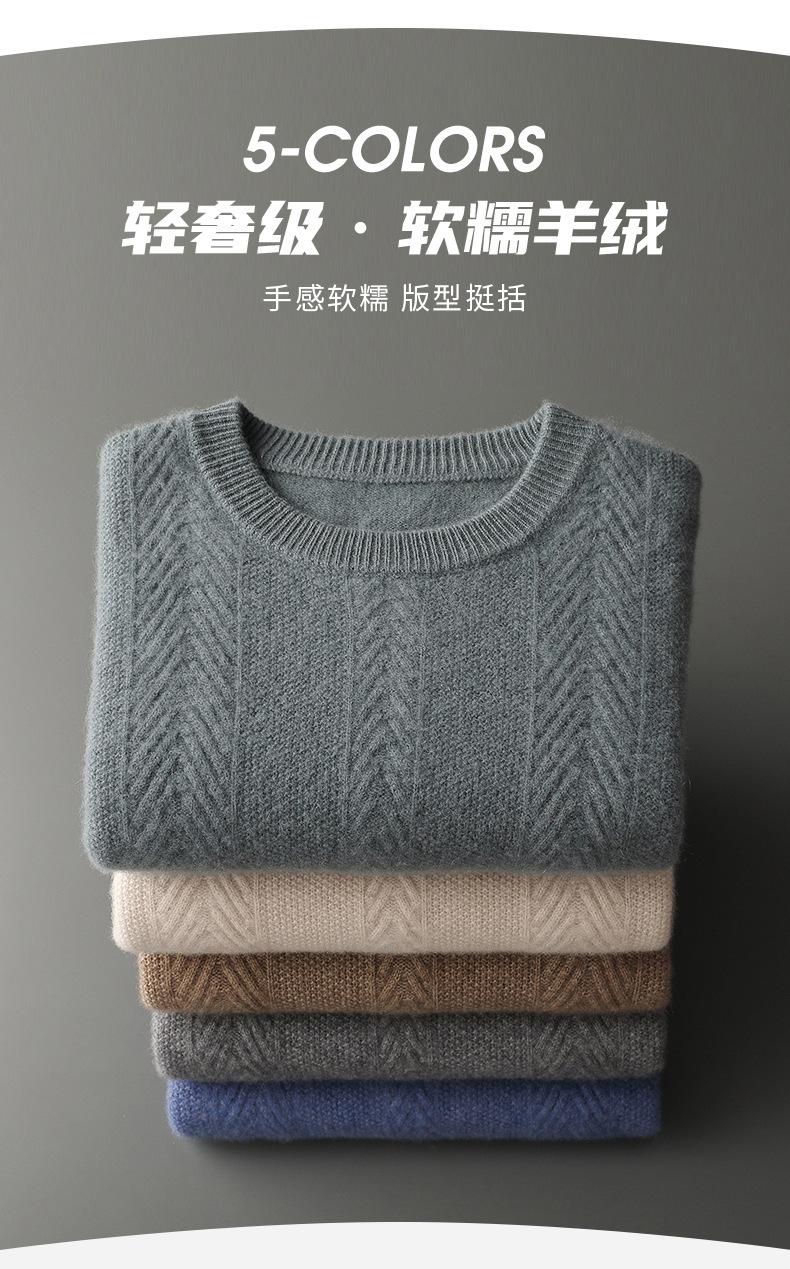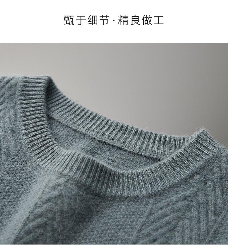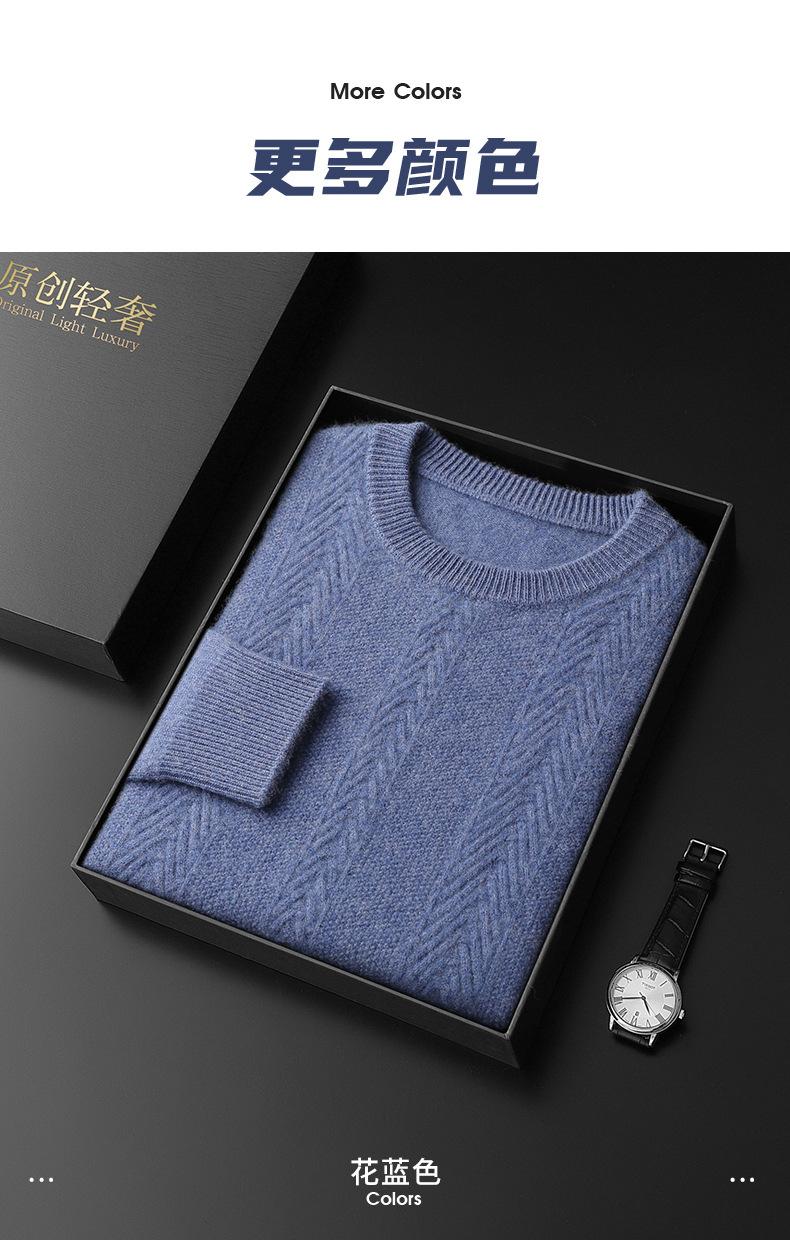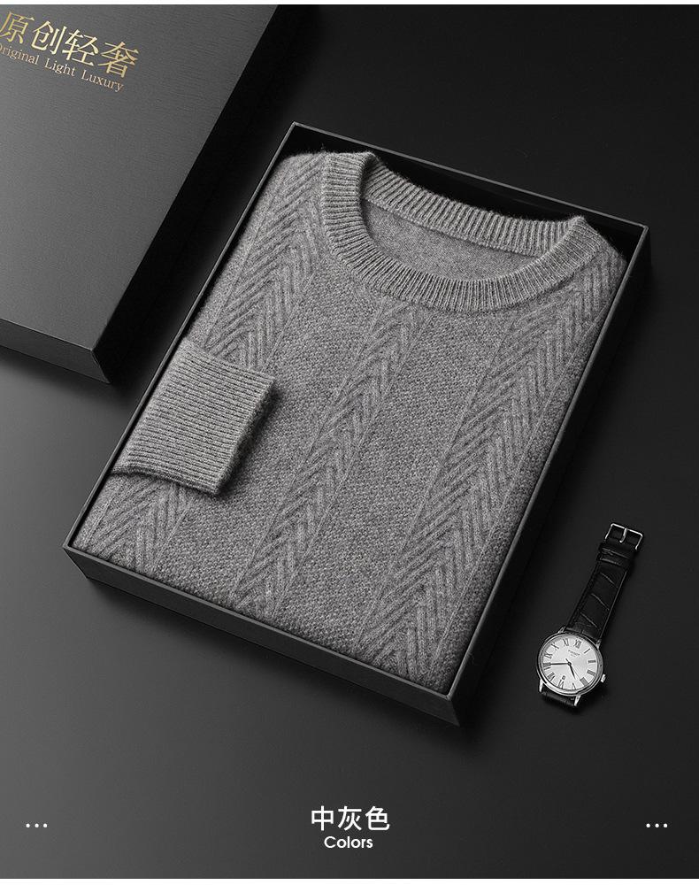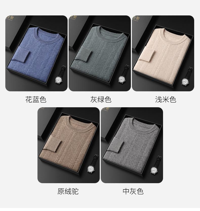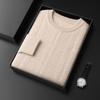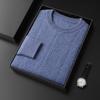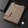 Suéter de cachemira de otoño e invierno para hombre, suéter grueso y cálido con cuello redondo, camisa de punto de lana jacquard de negocios de mediana edad para hombre
