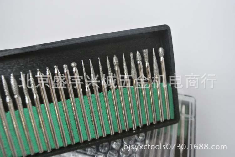 Aguja de pulido de diamante: Diámetro del vástago: 3 mm 30 piezas por caja (varias formas)