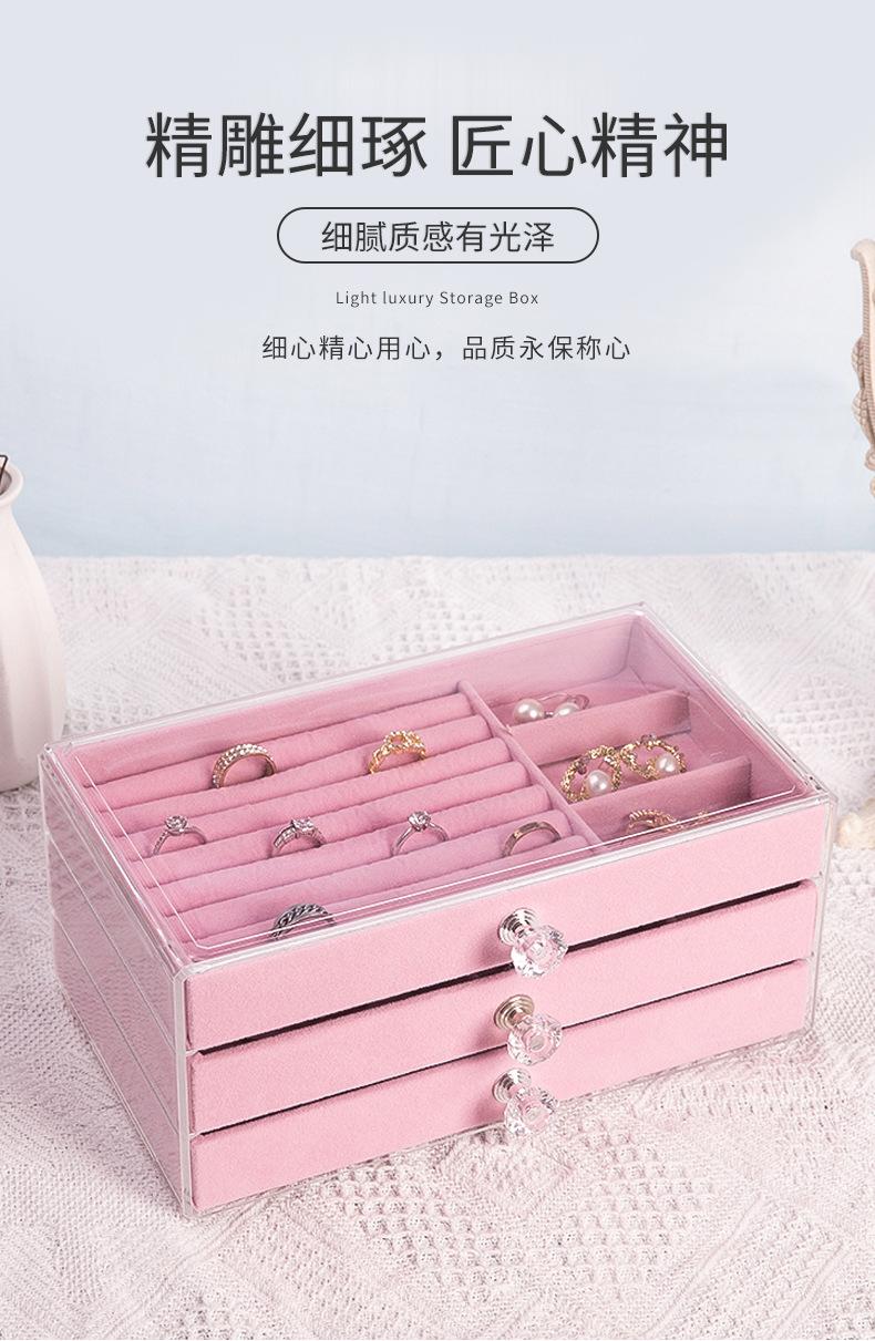 Nueva caja de joyería de franela transparente acrílica, caja de almacenamiento para exhibición de anillos y joyas, fabricantes en stock al por mayor