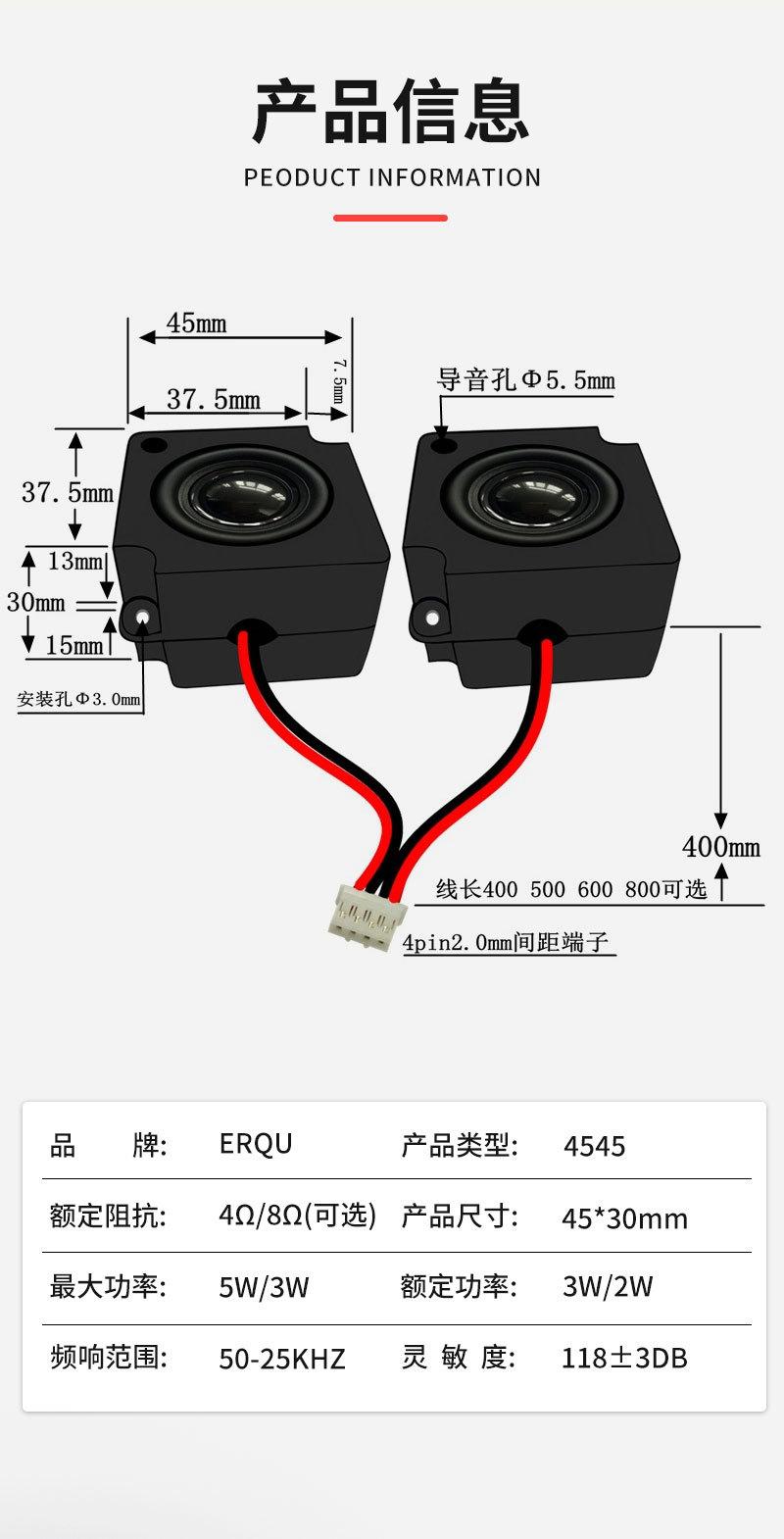 Jinggeyuan 4545 Cavidad de Altavoz 4 Ohmios 3W Voz Inteligente Digital Hogar Máquina de Publicidad Altavoz de Rango Completo Altavoz