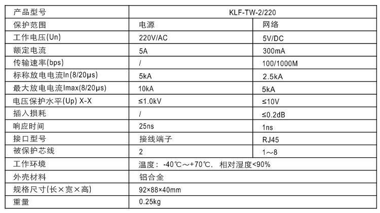 Protector contra sobretensiones 2 en 1 pararrayos de red: KLF-TW-2/220
