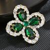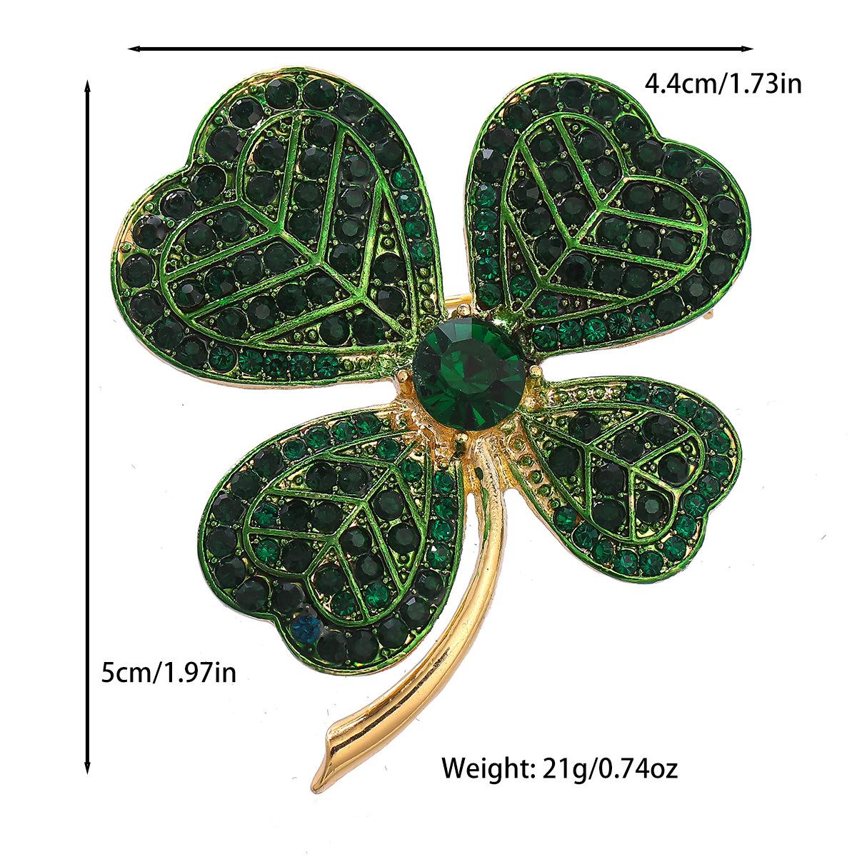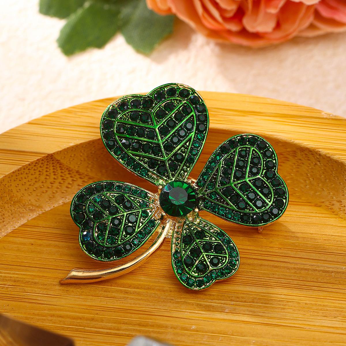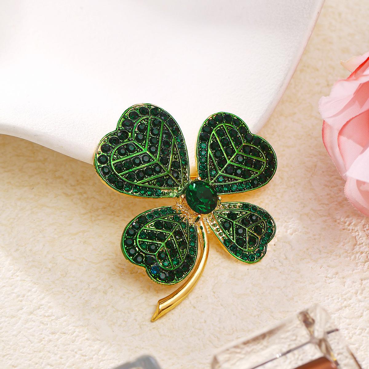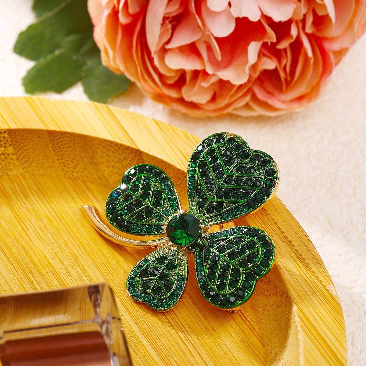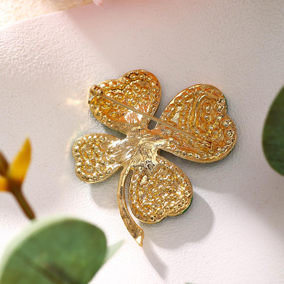 Broche de aleación con forma de trébol de cuatro hojas de la suerte verde, con borde cruzado, diseño de nicho de gran sentido, para traje, vestido, alfiler decorativo.
